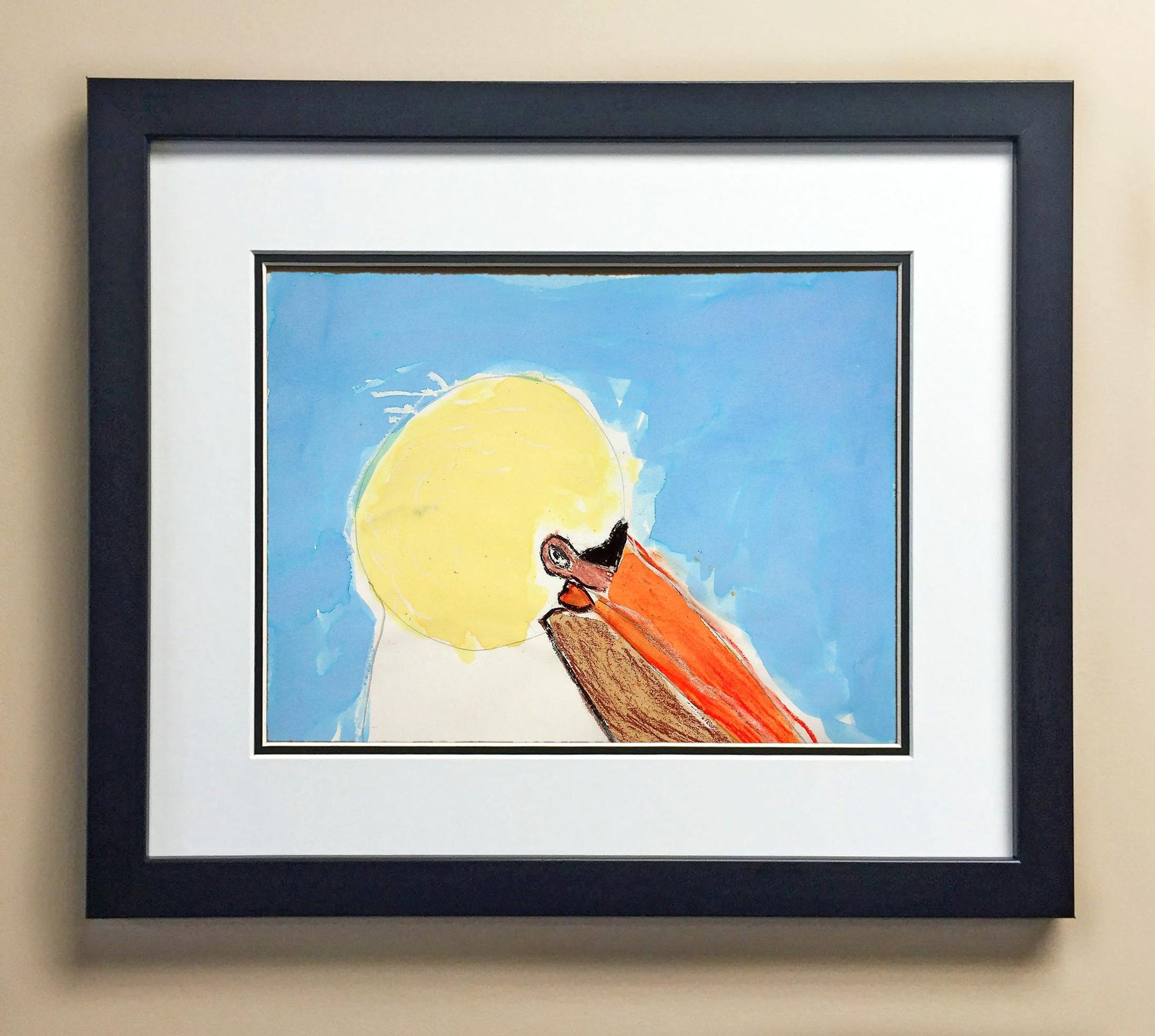 Included with the purchase is the Students Artwork, Frame, double matboard, shatter proof plexiglass, and a ready to hang backerboard with turnbuttons
