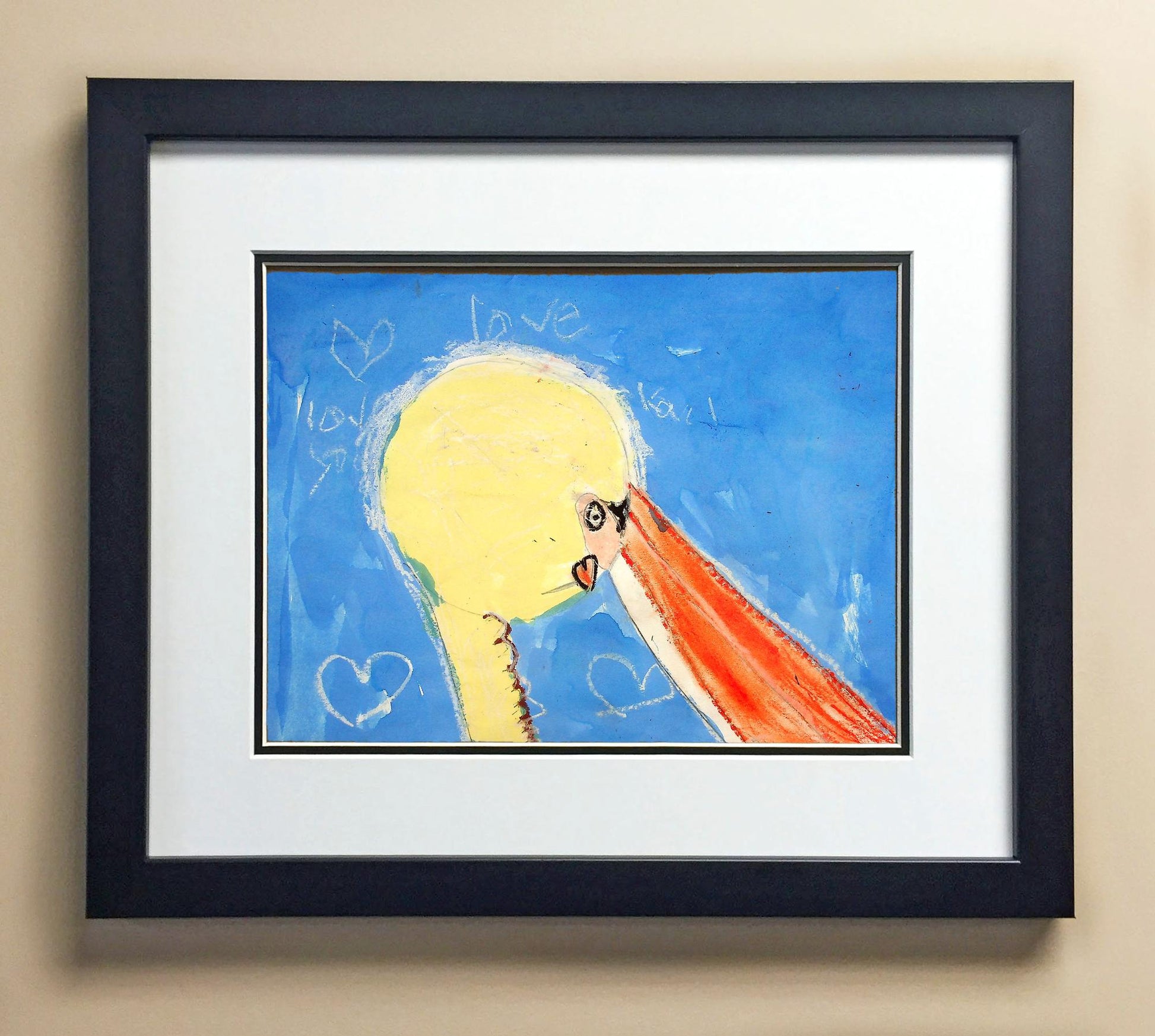 Included with the purchase is the Students Artwork, Frame, double matboard, shatter proof plexiglass, and a ready to hang backerboard with turnbuttons