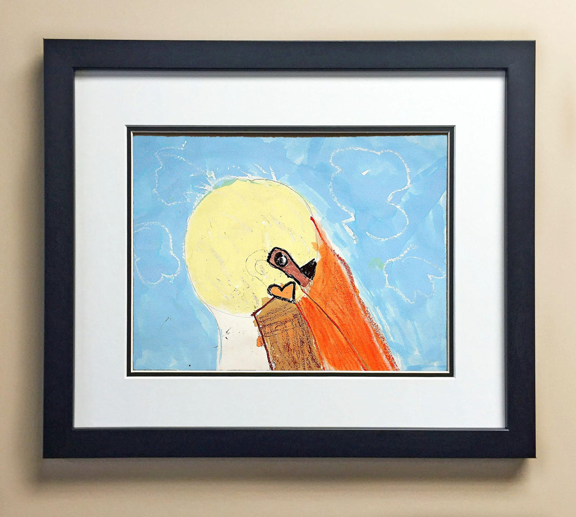 Included with the purchase is the Students Artwork, Frame, double matboard, shatter proof plexiglass, and a ready to hang backerboard with turnbuttons
