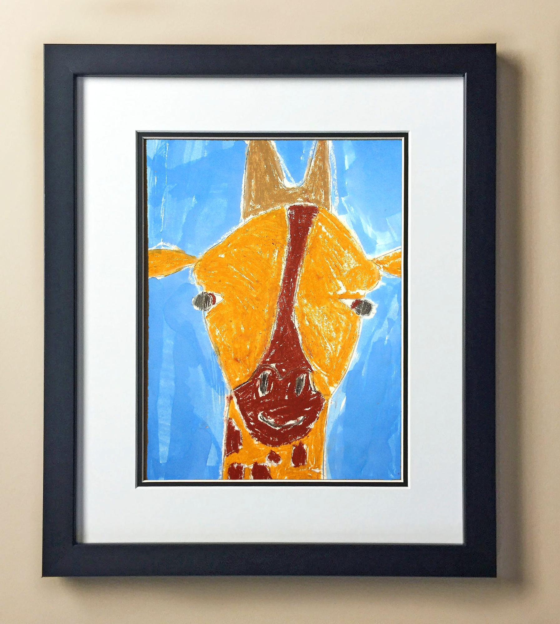 Included with the purchase is the Students Artwork, Frame, double matboard, shatter proof plexiglass, and a ready to hang backerboard with turnbuttons