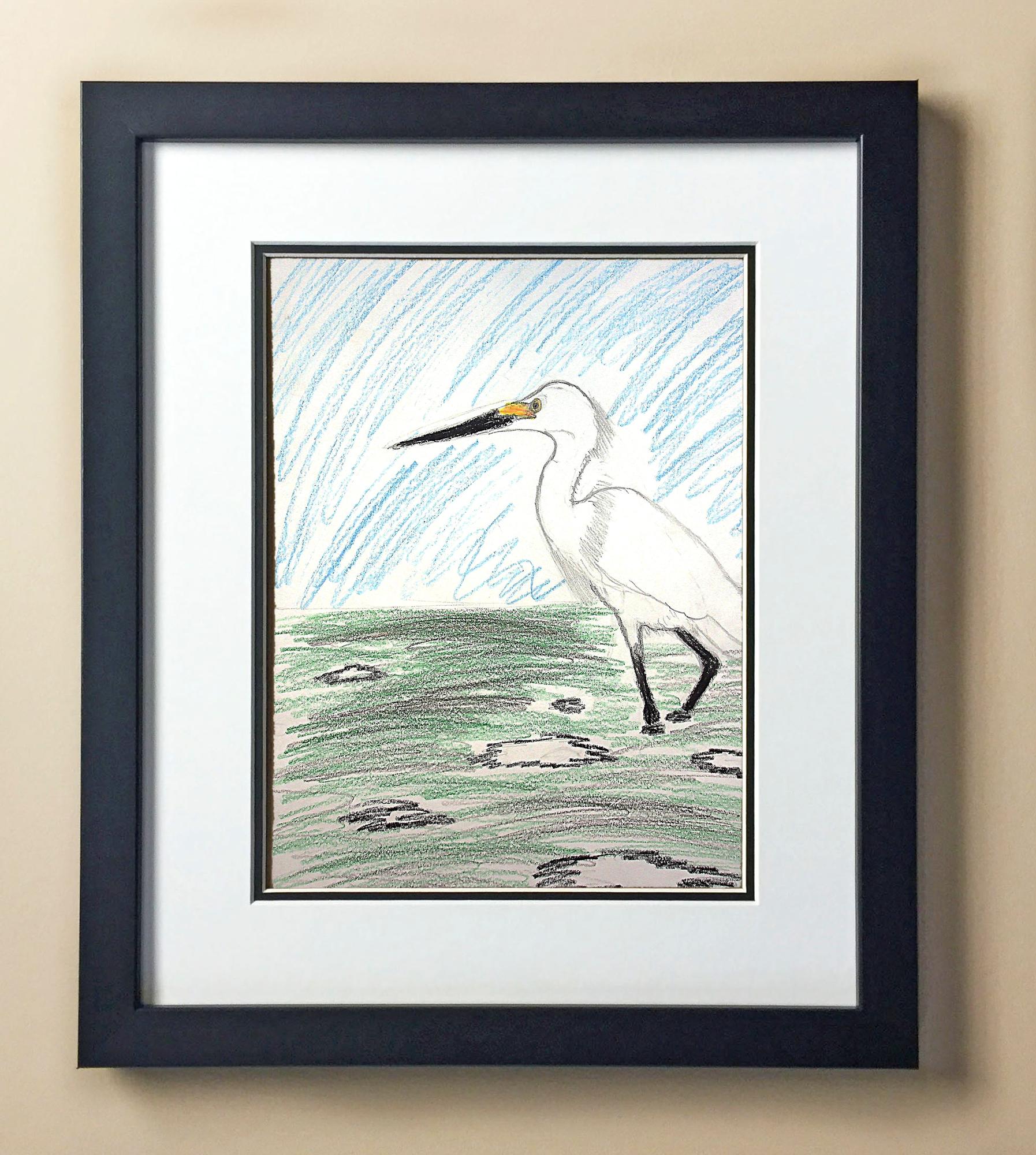 Included with the purchase is the Students Artwork, Frame, double matboard, shatter proof plexiglass, and a ready to hang backerboard with turnbuttons