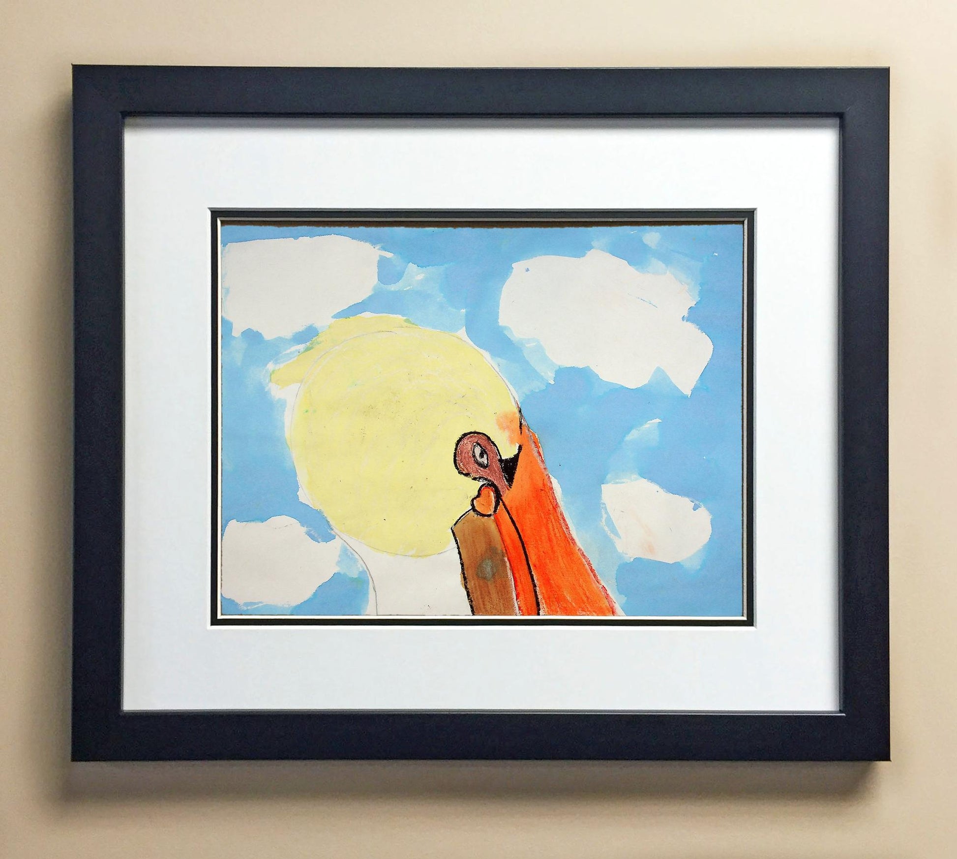 Included with the purchase is the Students Artwork, Frame, double matboard, shatter proof plexiglass, and a ready to hang backerboard with turnbuttons