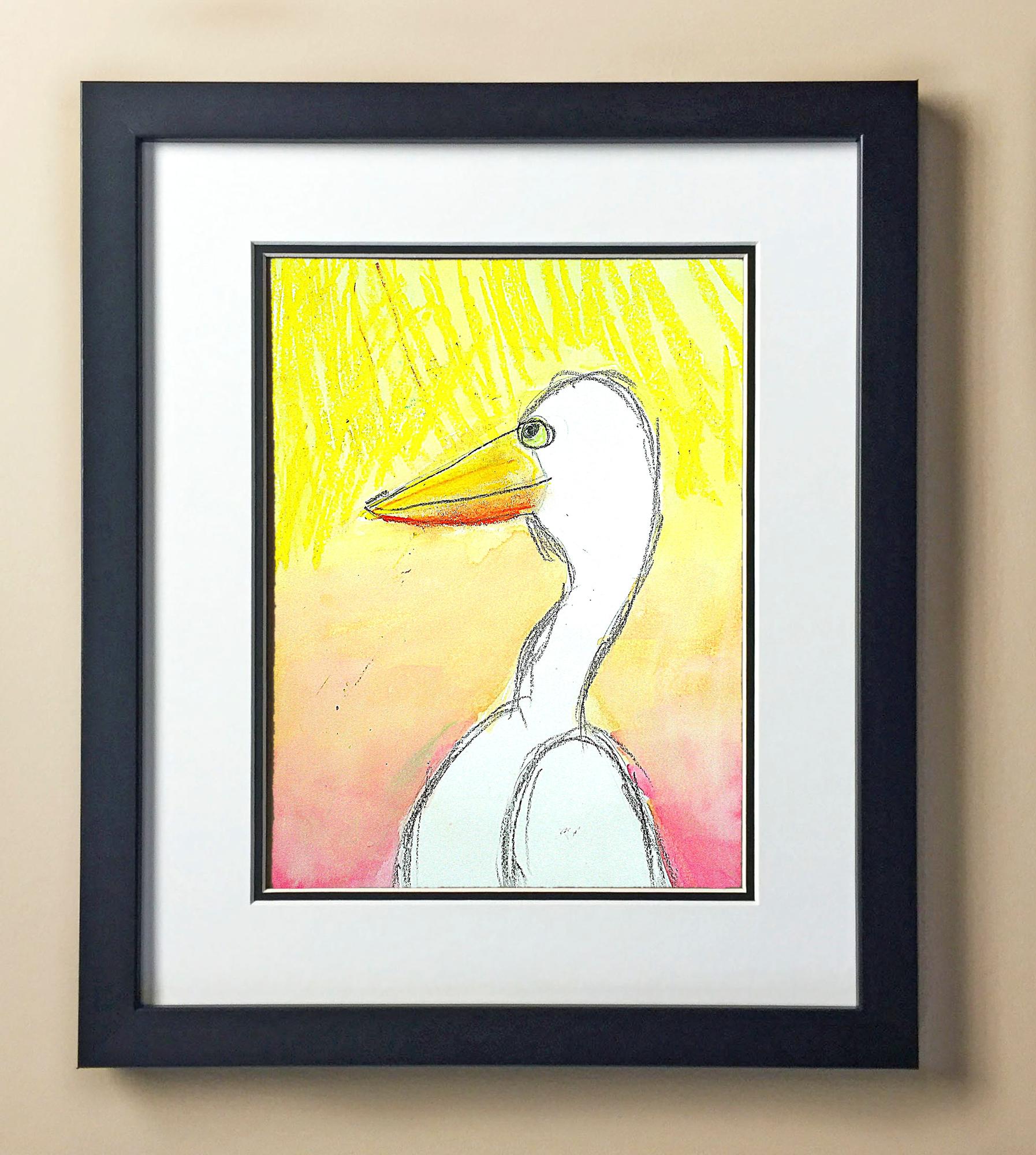 Included with the purchase is the Students Artwork, Frame, double matboard, shatter proof plexiglass, and a ready to hang backerboard with turnbuttons