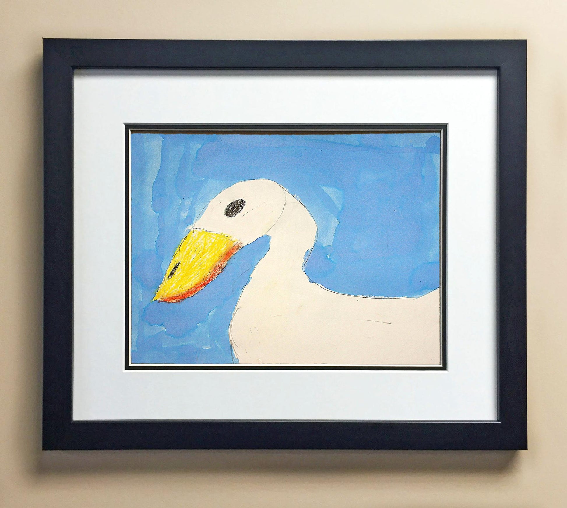 Included with the purchase is the Students Artwork, Frame, double matboard, shatter proof plexiglass, and a ready to hang backerboard with turnbuttons