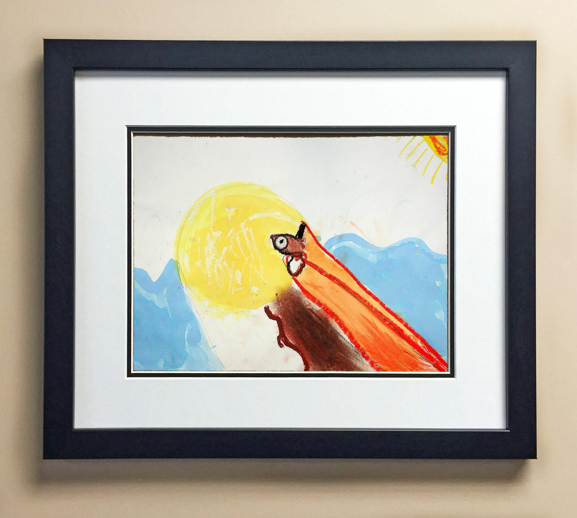 Included with the purchase is the Students Artwork, Frame, double matboard, shatter proof plexiglass, and a ready to hang backerboard with turnbuttons