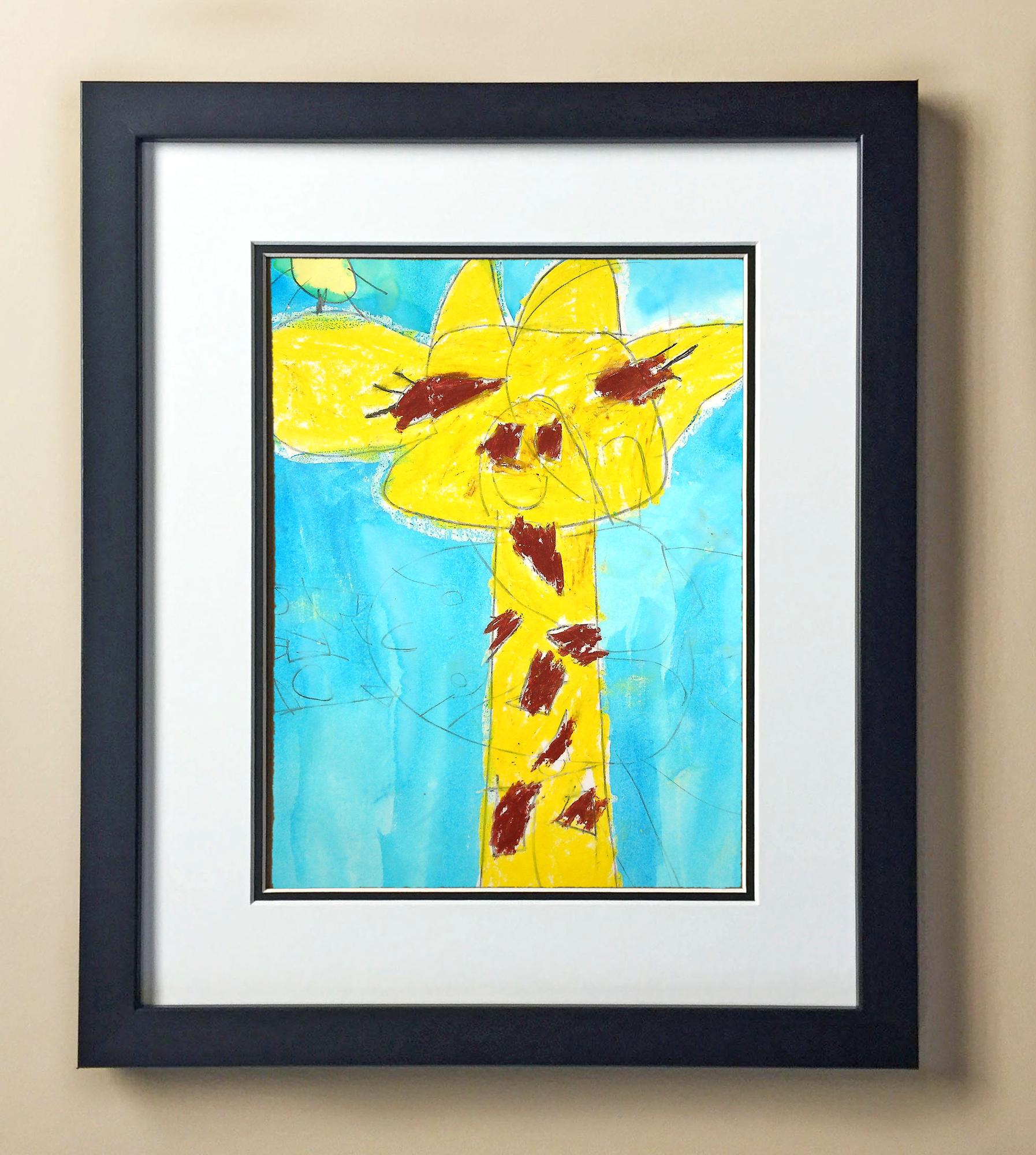 Included with the purchase is the Students Artwork, Frame, double matboard, shatter proof plexiglass, and a ready to hang backerboard with turnbuttons