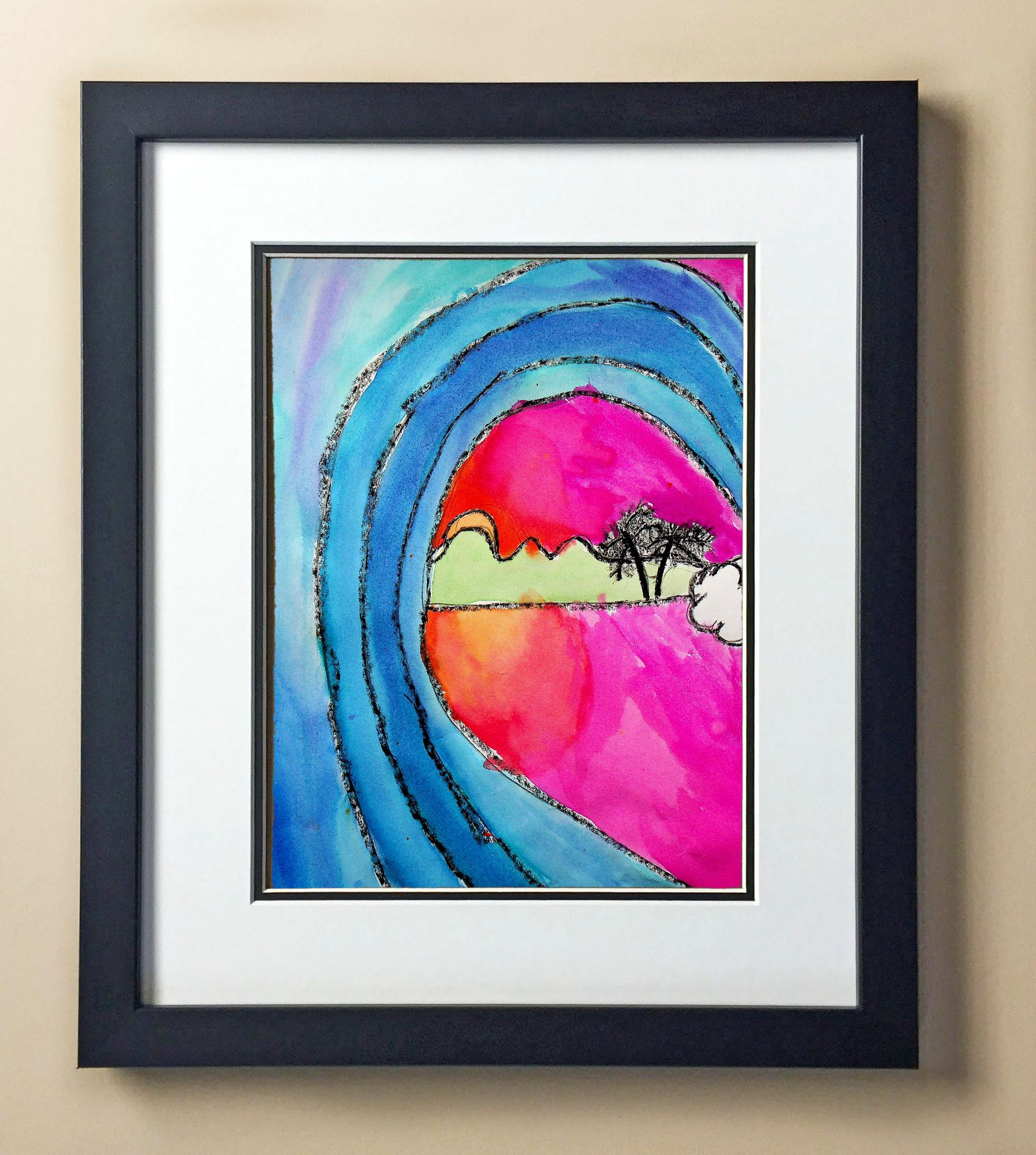 Included with the purchase is the Students Artwork, Frame, double matboard, shatter proof plexiglass, and a ready to hang backerboard with turnbuttons
