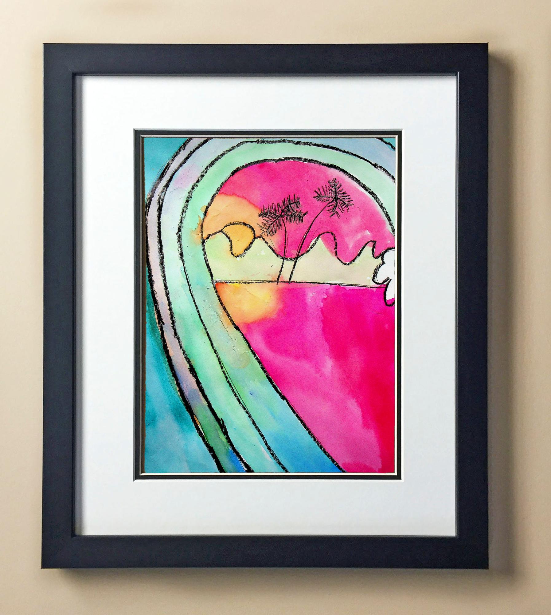 Included with the purchase is the Students Artwork, Frame, double matboard, shatter proof plexiglass, and a ready to hang backerboard with turnbuttons