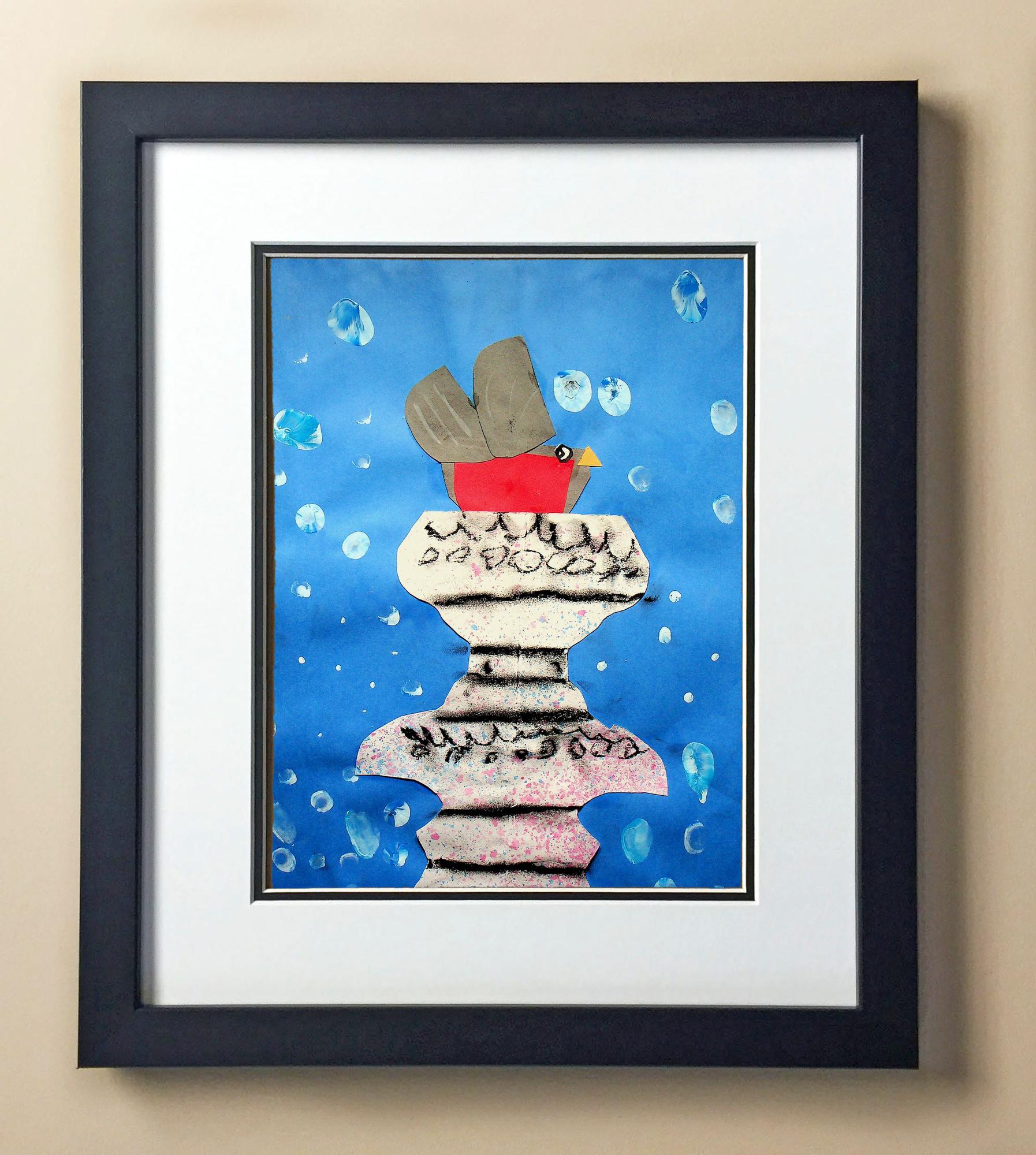 Included with the purchase is the Students Artwork, Frame, double matboard, shatter proof plexiglass, and a ready to hang backerboard with turnbuttons