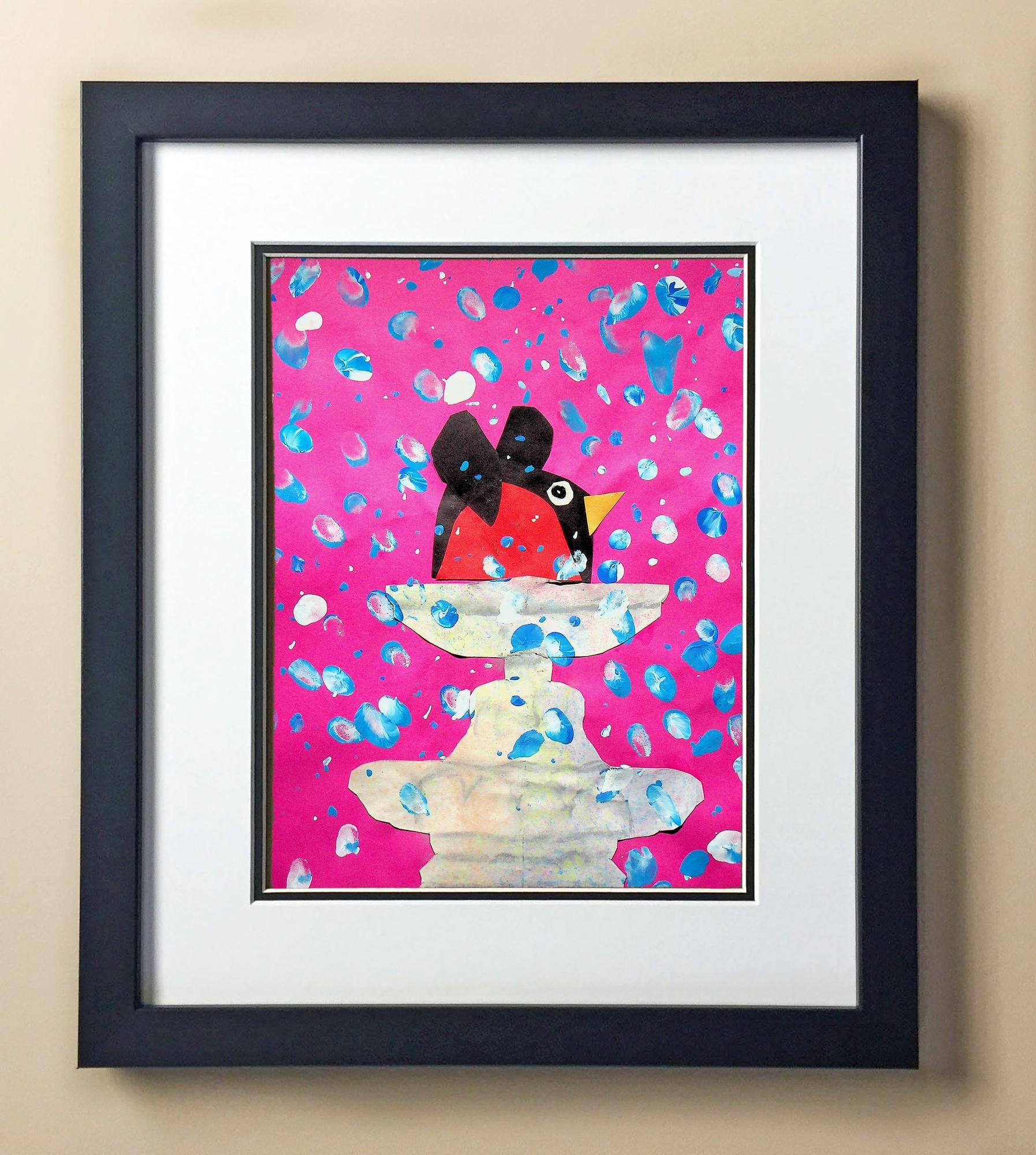 Included with the purchase is the Students Artwork, Frame, double matboard, shatter proof plexiglass, and a ready to hang backerboard with turnbuttons