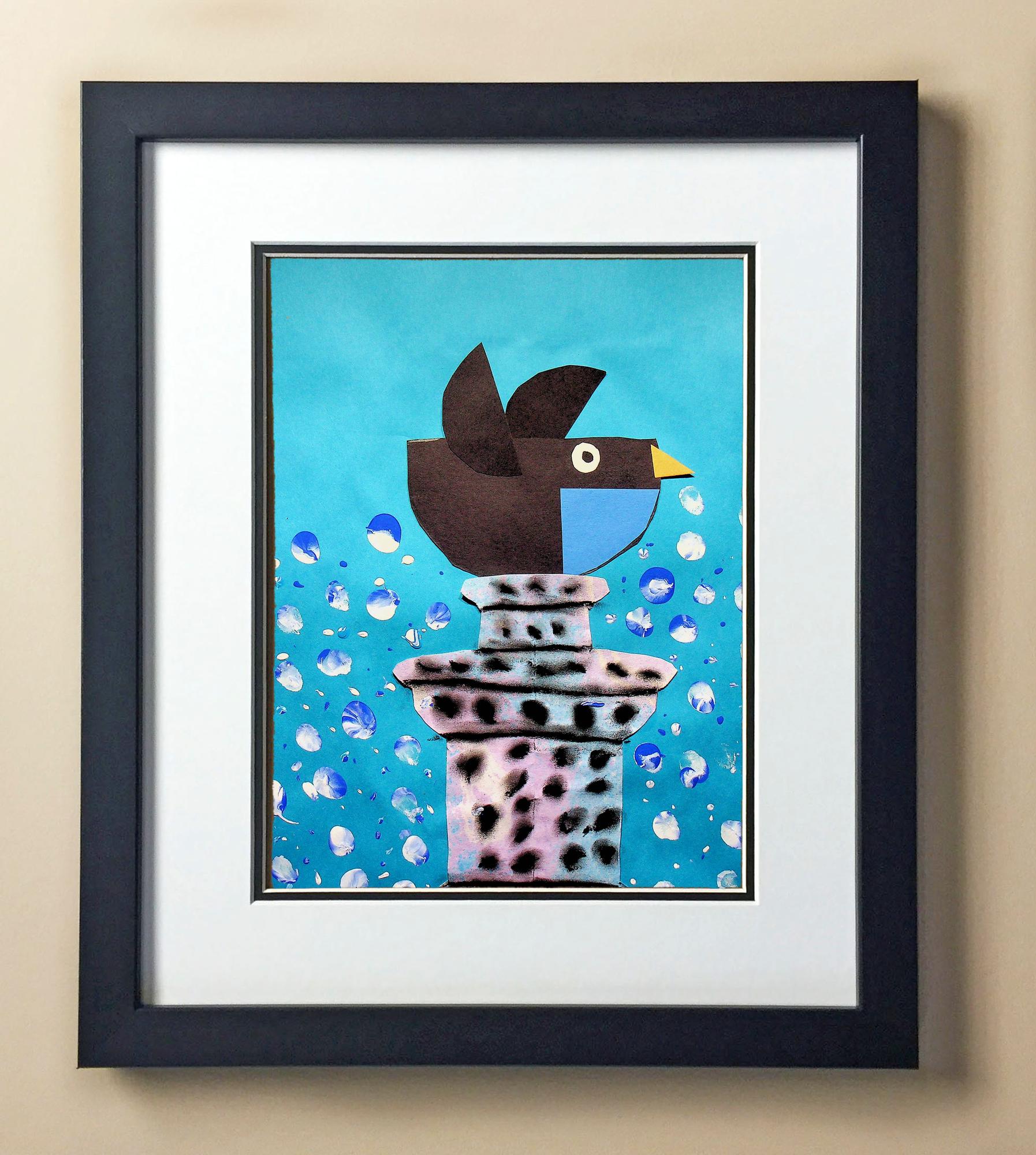 Included with the purchase is the Students Artwork, Frame, double matboard, shatter proof plexiglass, and a ready to hang backerboard with turnbuttons
