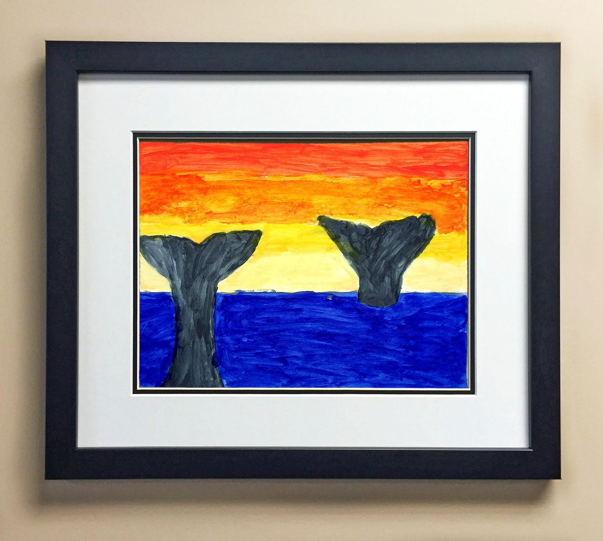 Included with the purchase is the Students Artwork, Frame, double matboard, shatter proof plexiglass, and a ready to hang backerboard with turnbuttons
