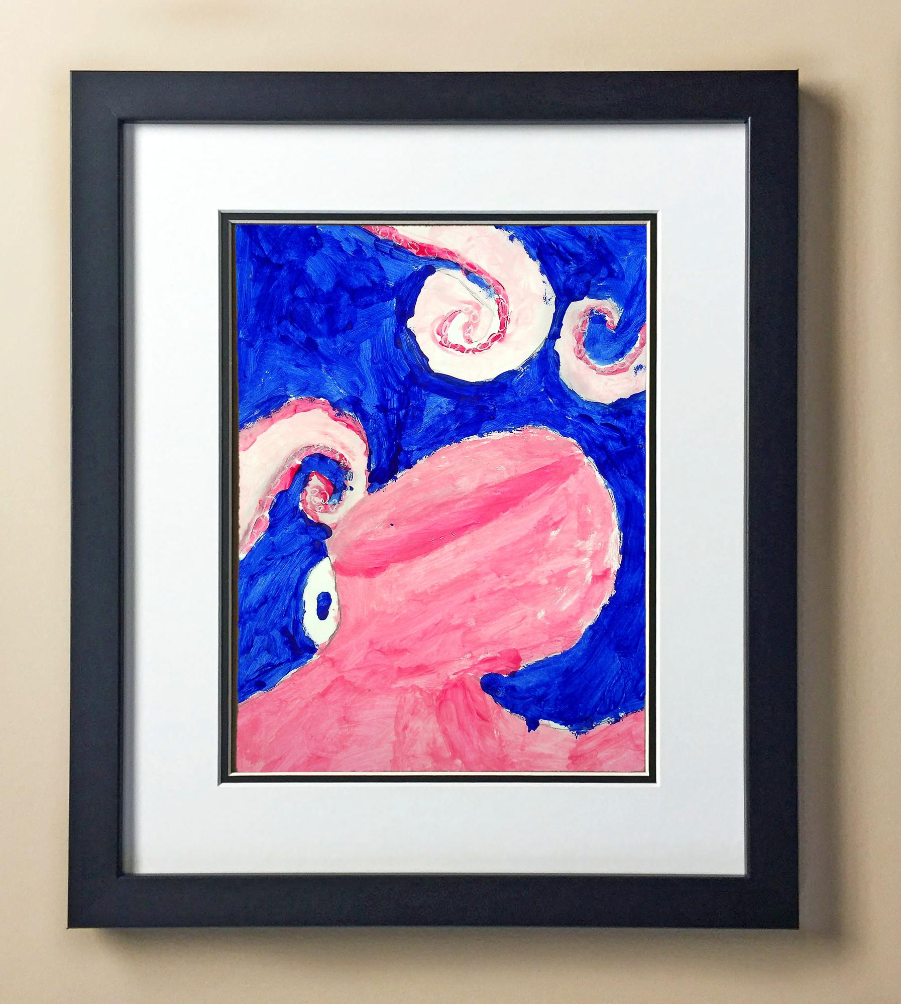 Included with the purchase is the Students Artwork, Frame, double matboard, shatter proof plexiglass, and a ready to hang backerboard with turnbuttons