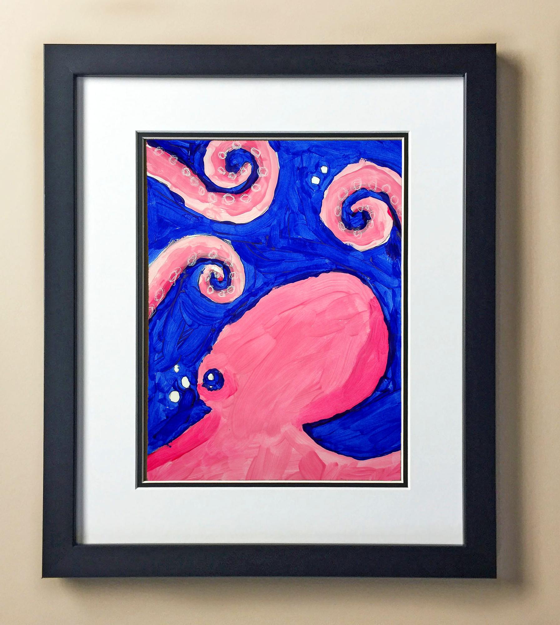 Included with the purchase is the Students Artwork, Frame, double matboard, shatter proof plexiglass, and a ready to hang backerboard with turnbuttons