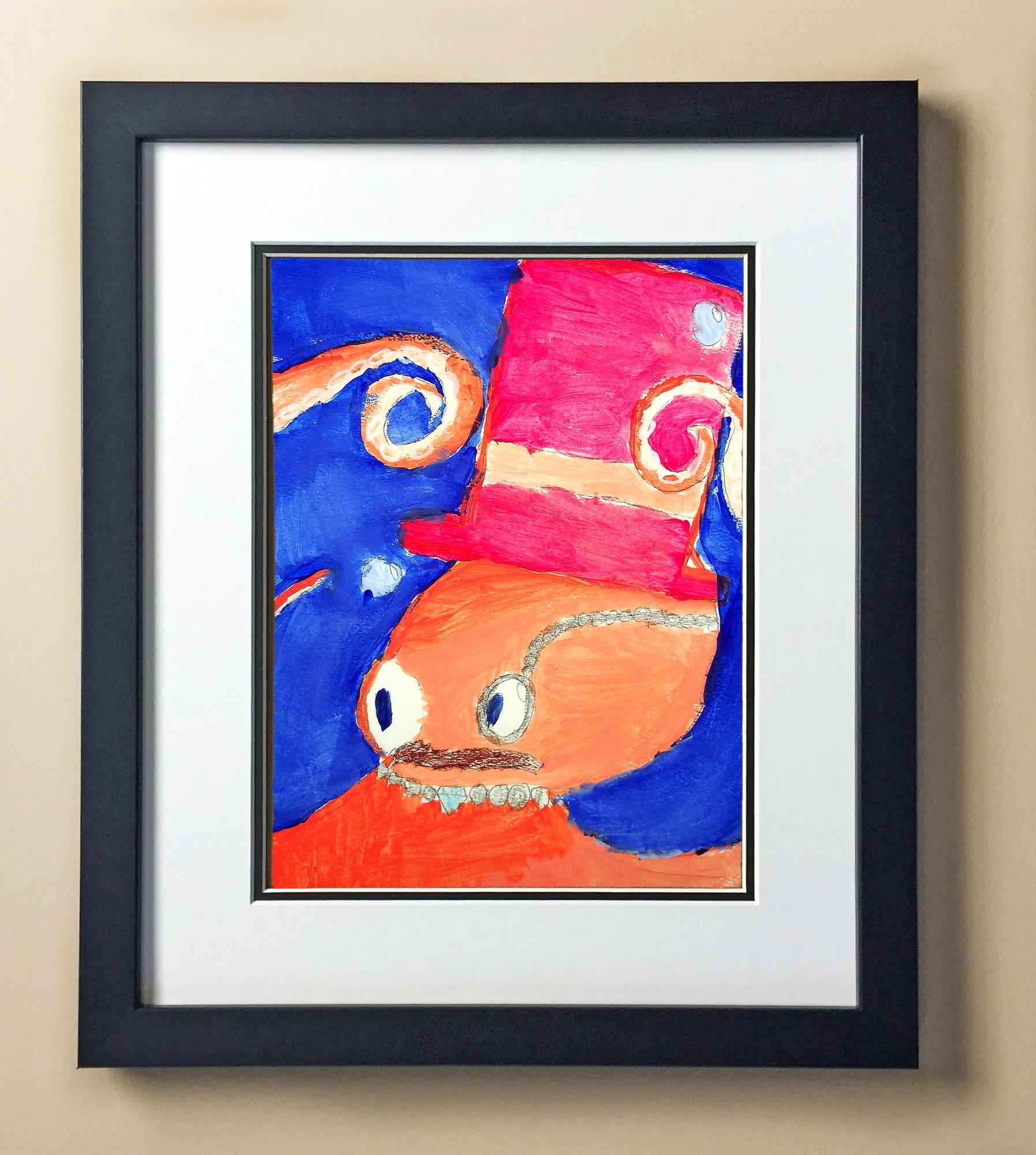Included with the purchase is the Students Artwork, Frame, double matboard, shatter proof plexiglass, and a ready to hang backerboard with turnbuttons