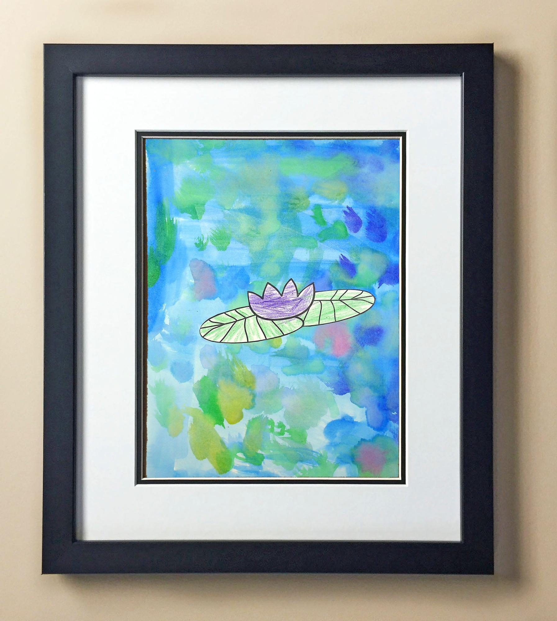 Included with the purchase is the Students Artwork, Frame, double matboard, shatter proof plexiglass, and a ready to hang backerboard with turnbuttons