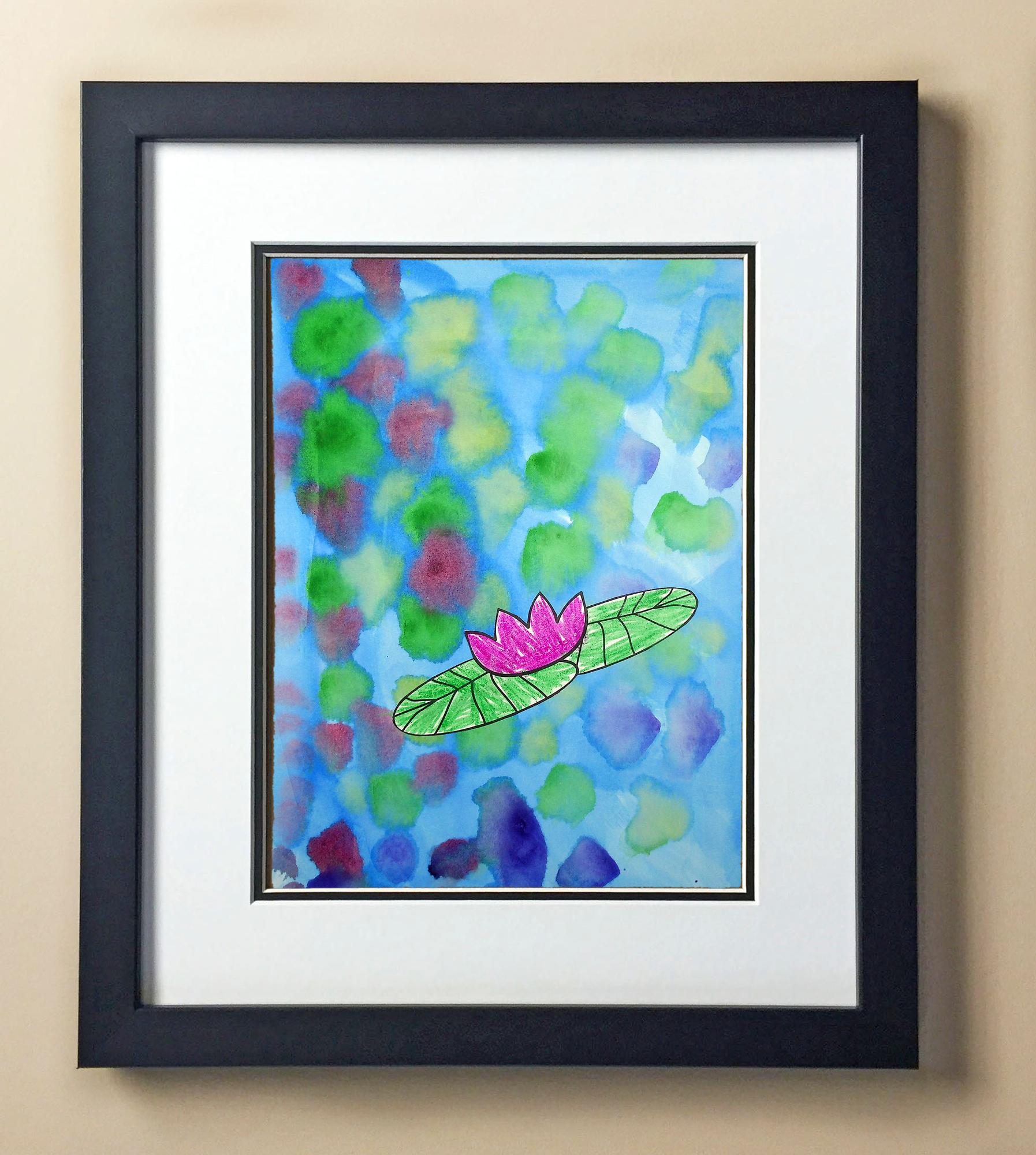 Included with the purchase is the Students Artwork, Frame, double matboard, shatter proof plexiglass, and a ready to hang backerboard with turnbuttons