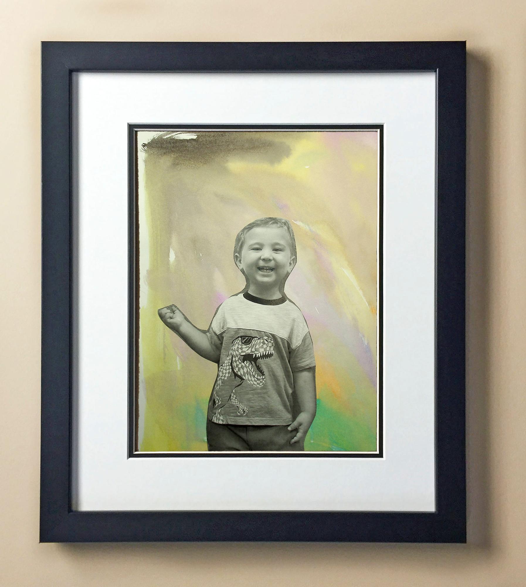Included with the purchase is the Students Artwork, Frame, double matboard, shatter proof plexiglass, and a ready to hang backerboard with turnbuttons