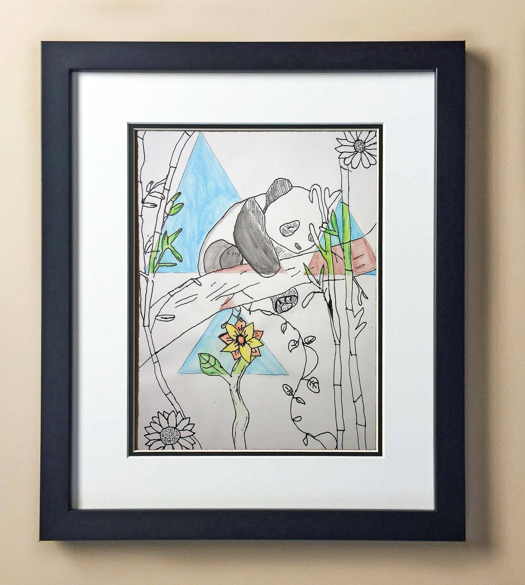 Included with the purchase is the Students Artwork, Frame, double matboard, shatter proof plexiglass, and a ready to hang backerboard with turnbuttons