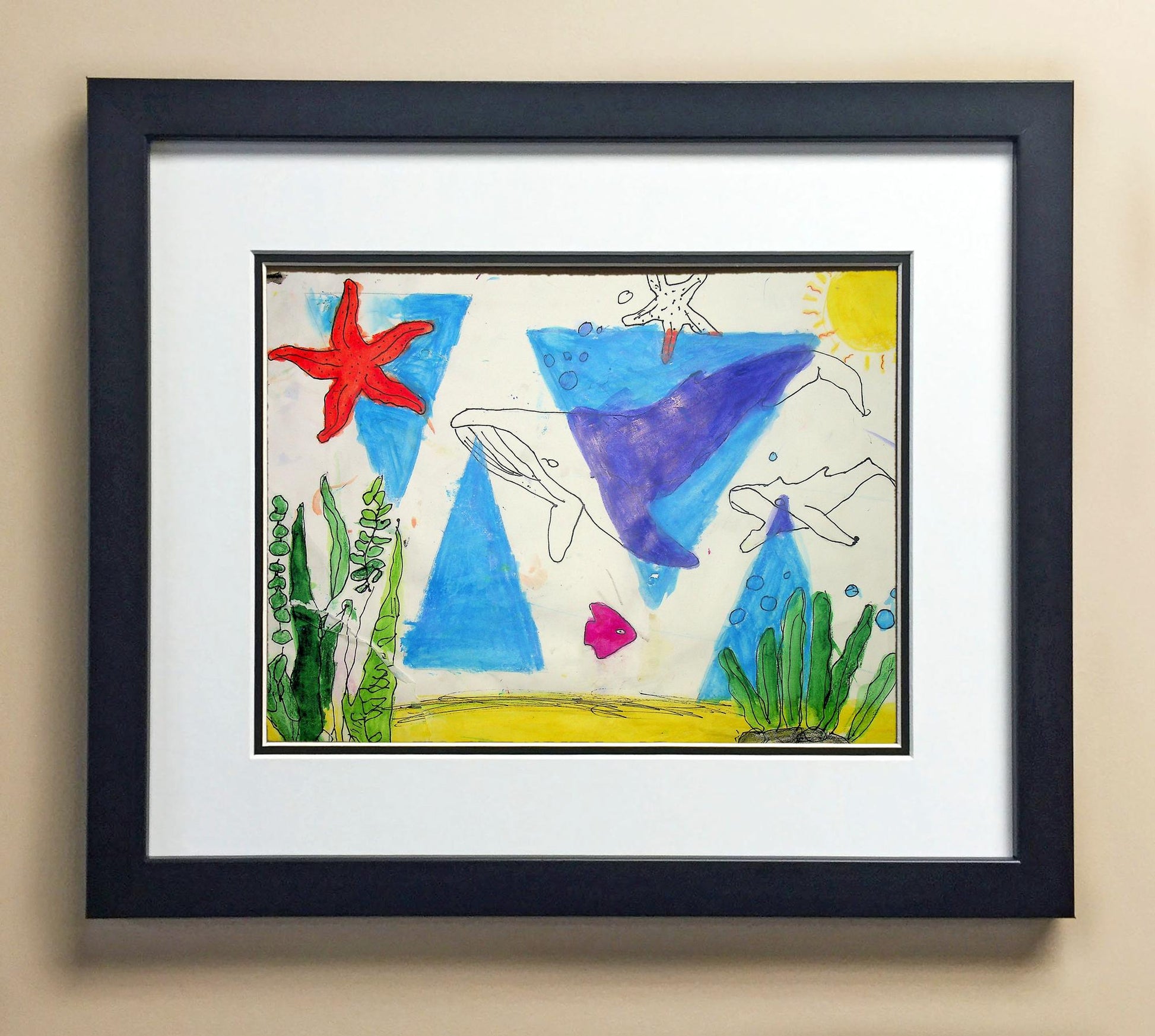 Included with the purchase is the Students Artwork, Frame, double matboard, shatter proof plexiglass, and a ready to hang backerboard with turnbuttons