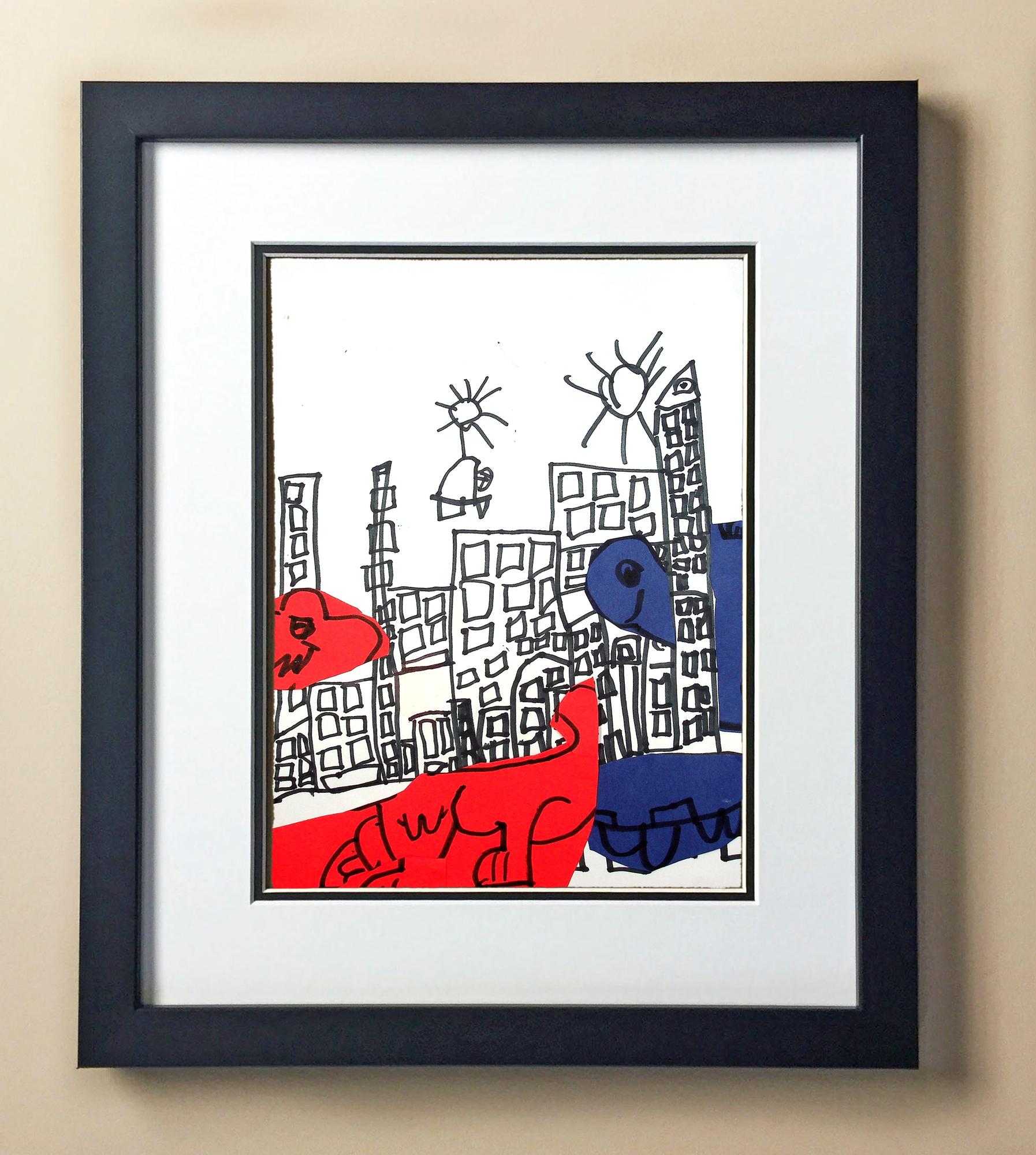 Included with the purchase is the Students Artwork, Frame, double matboard, shatter proof plexiglass, and a ready to hang backerboard with turnbuttons