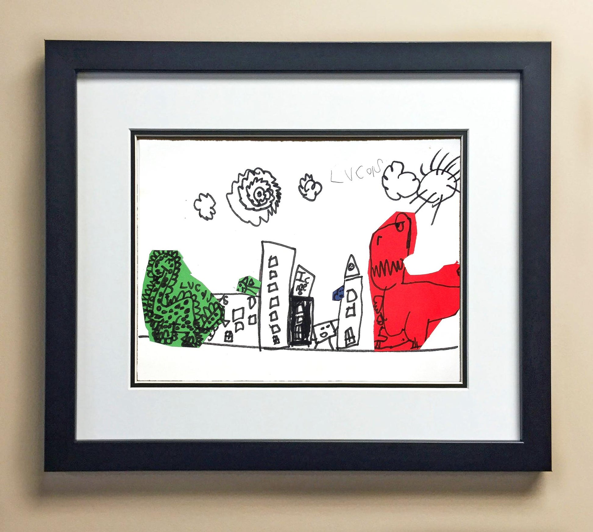 Included with the purchase is the Students Artwork, Frame, double matboard, shatter proof plexiglass, and a ready to hang backerboard with turnbuttons
