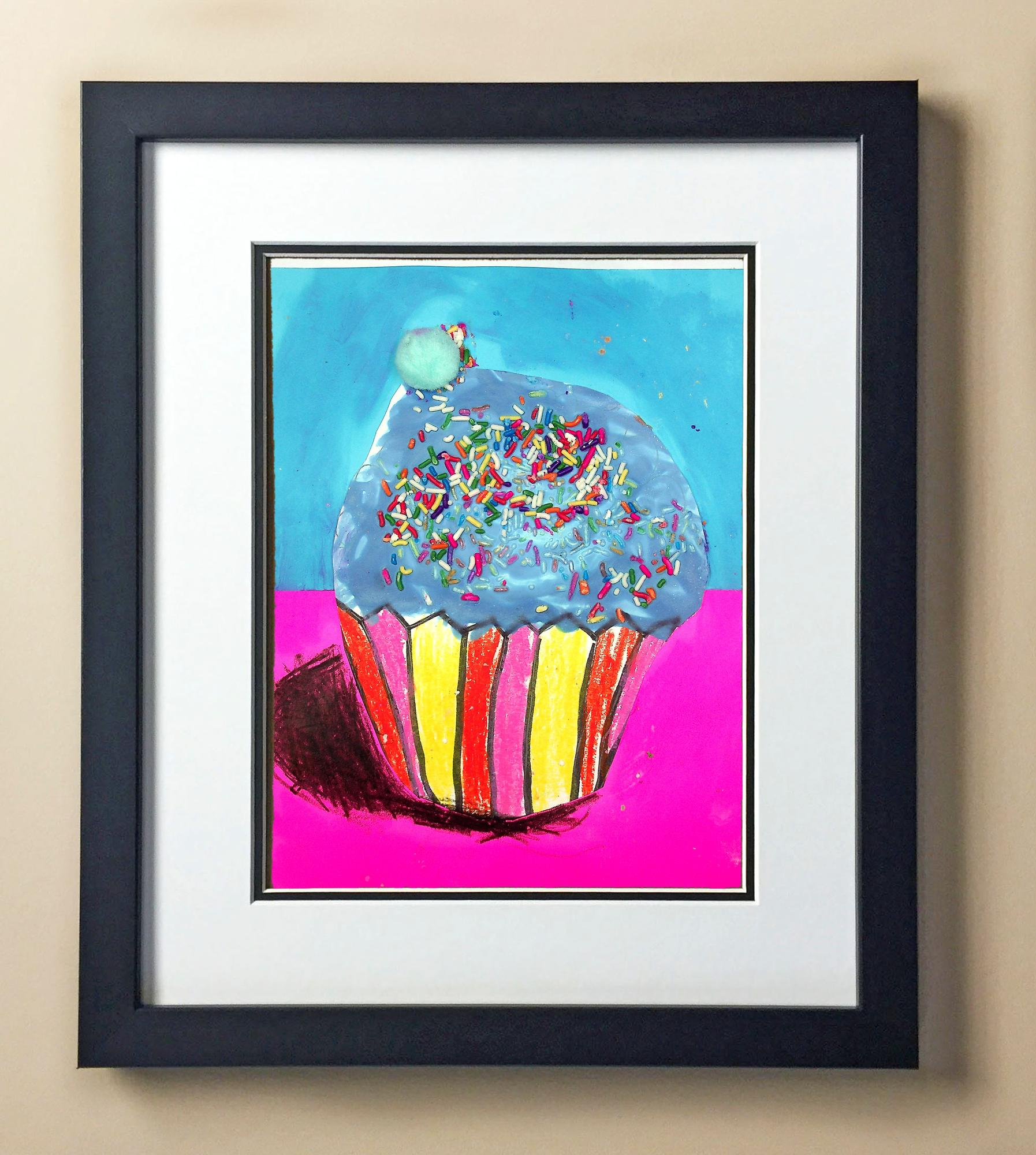 Included with the purchase is the Students Artwork, Frame, double matboard, shatter proof plexiglass, and a ready to hang backerboard with turnbuttons