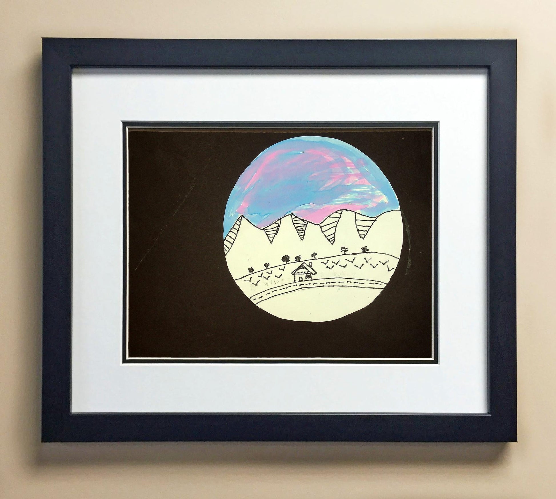 Included with the purchase is the Students Artwork, Frame, double matboard, shatter proof plexiglass, and a ready to hang backerboard with turnbuttons