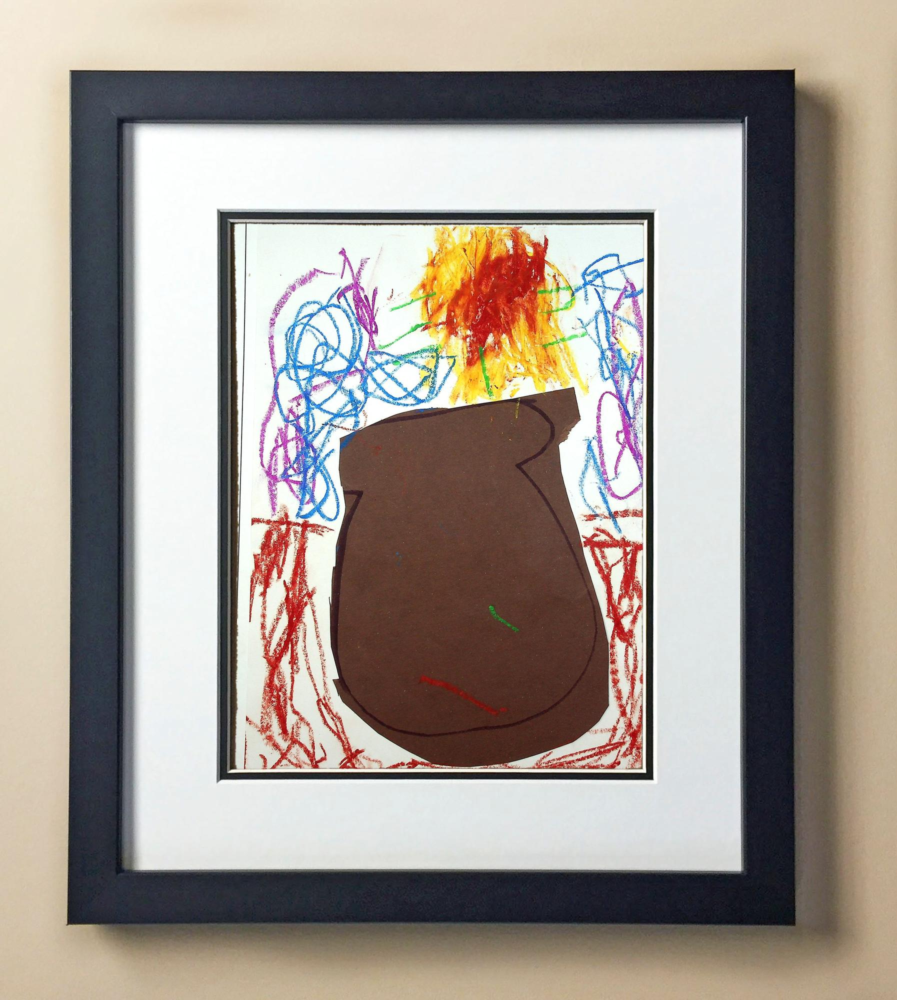 Included with the purchase is the Students Artwork, Frame, double matboard, shatter proof plexiglass, and a ready to hang backerboard with turnbuttons