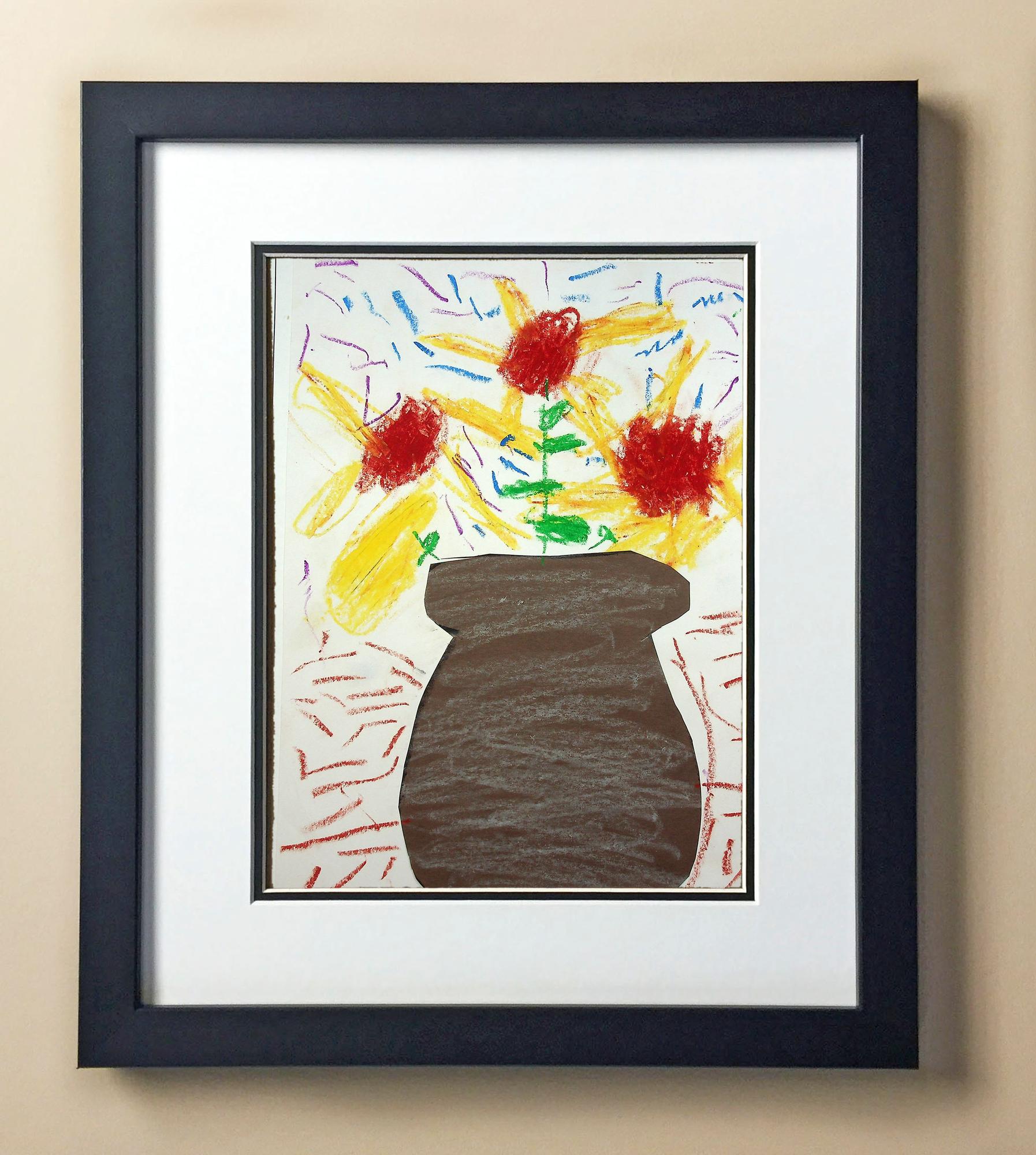 Included with the purchase is the Students Artwork, Frame, double matboard, shatter proof plexiglass, and a ready to hang backerboard with turnbuttons