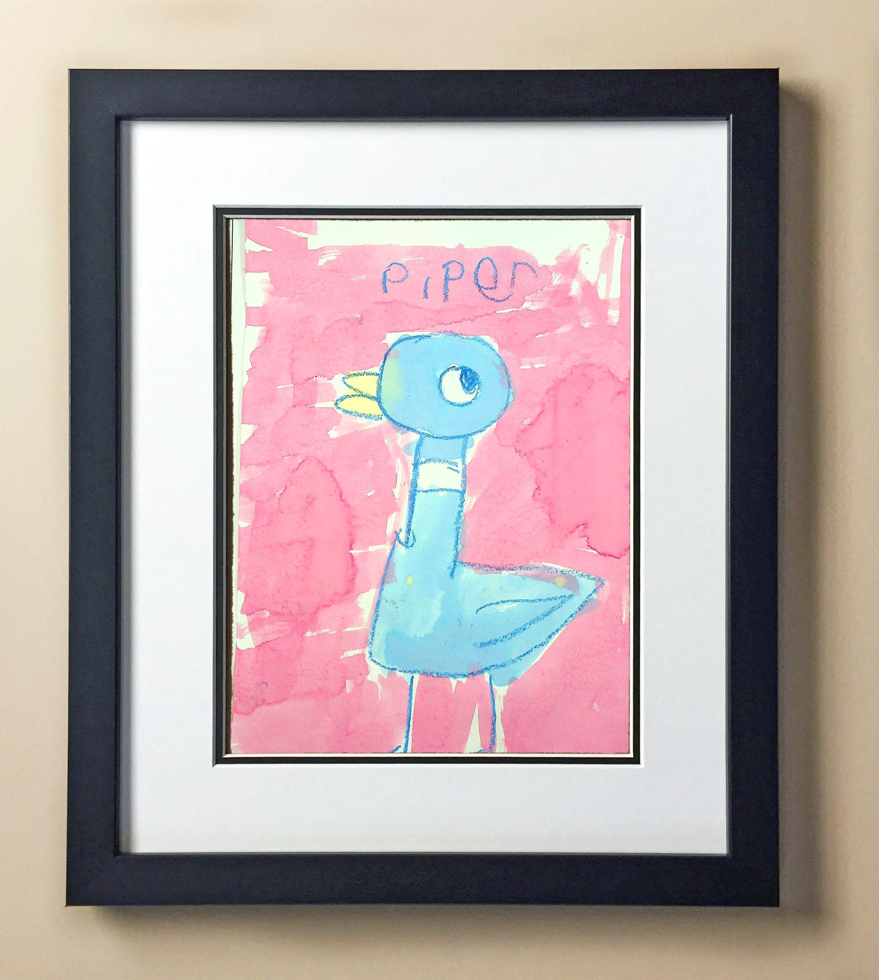 Included with the purchase is the Students Artwork, Frame, double matboard, shatter proof plexiglass, and a ready to hang backerboard with turnbuttons