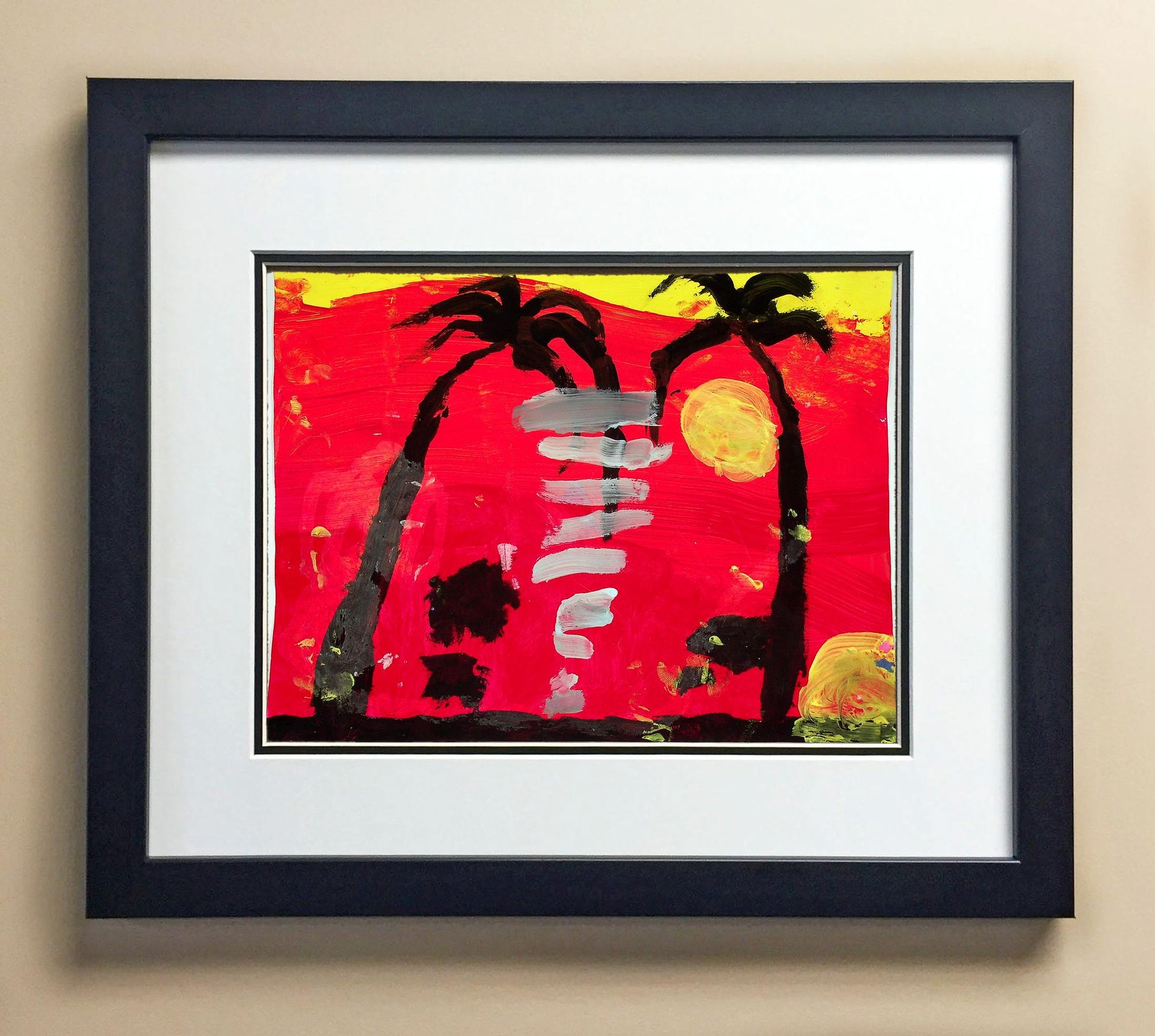 Included with the purchase is the Students Artwork, Frame, double matboard, shatter proof plexiglass, and a ready to hang backerboard with turnbuttons