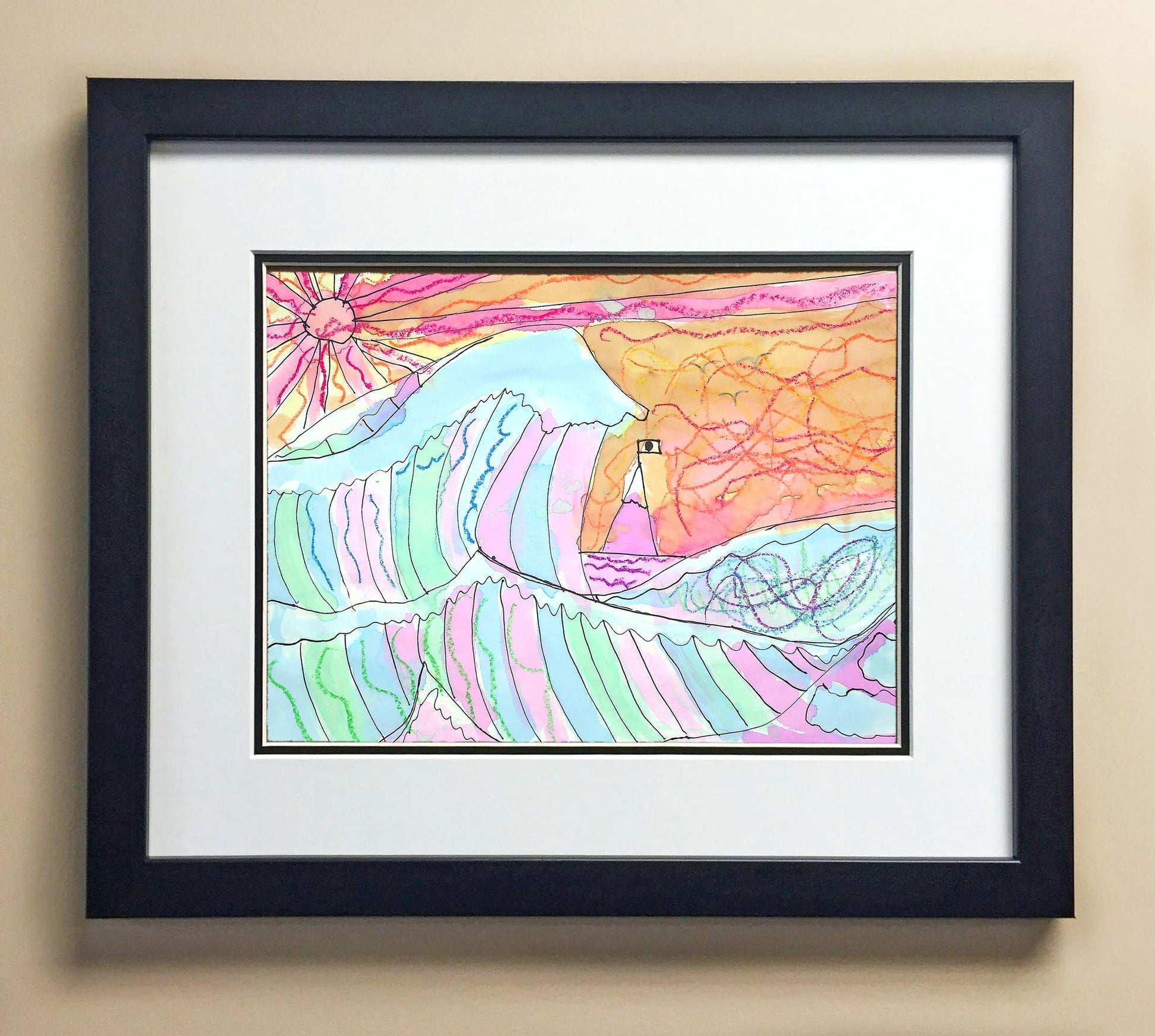 Included with the purchase is the Students Artwork, Frame, double matboard, shatter proof plexiglass, and a ready to hang backerboard with turnbuttons