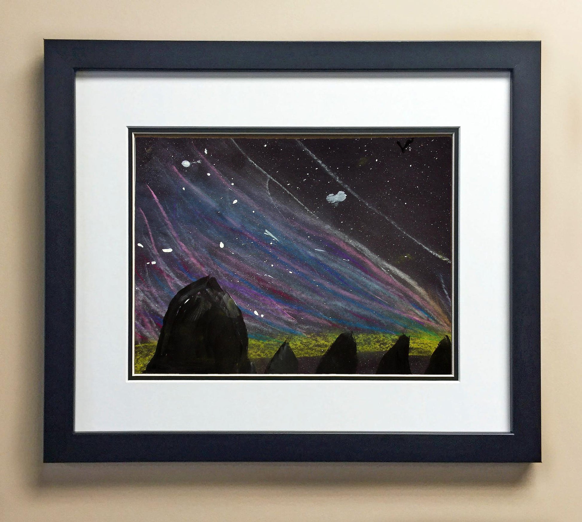 Included with the purchase is the Students Artwork, Frame, double matboard, shatter proof plexiglass, and a ready to hang backerboard with turnbuttons