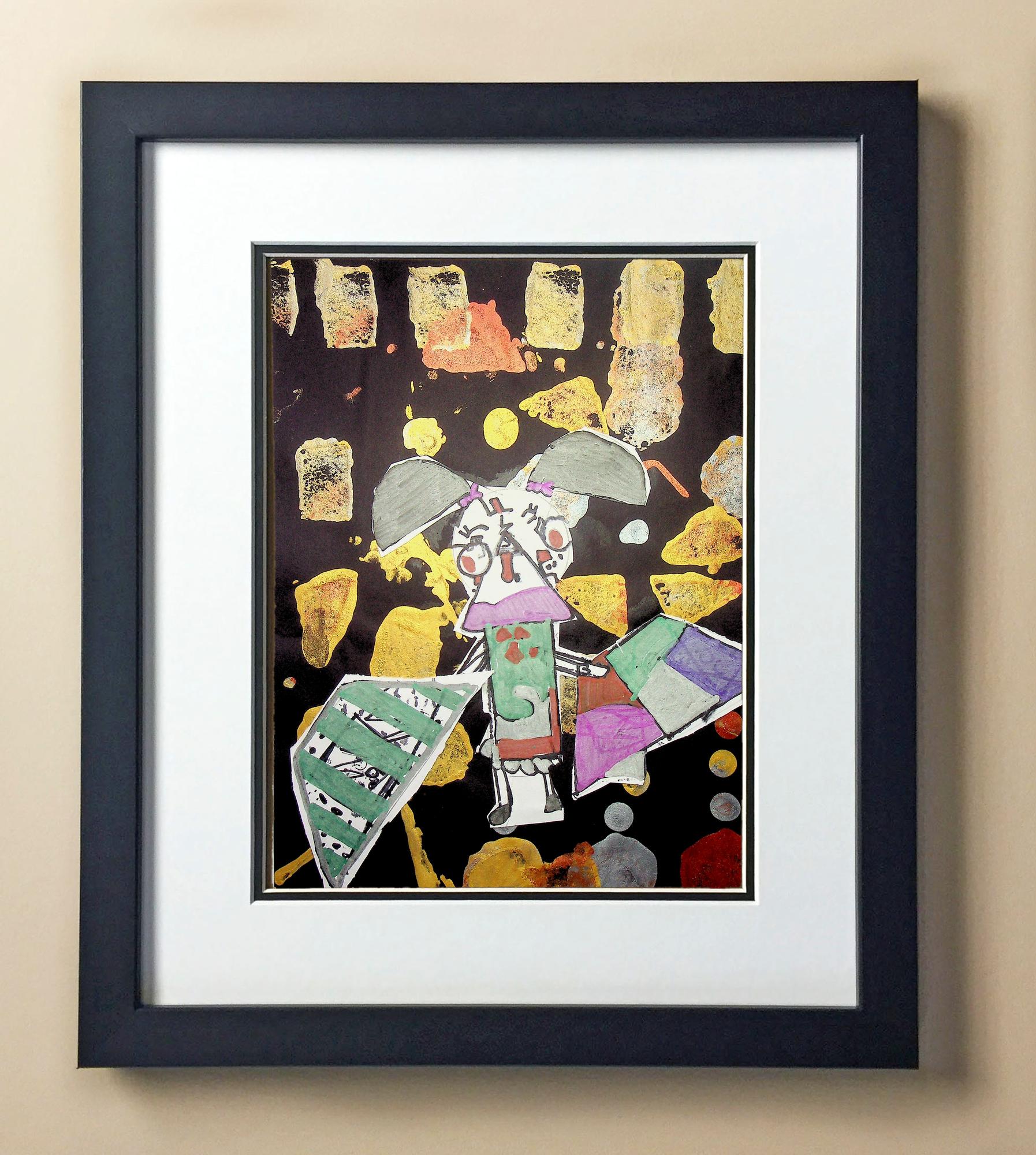 Included with the purchase is the Students Artwork, Frame, double matboard, shatter proof plexiglass, and a ready to hang backerboard with turnbuttons