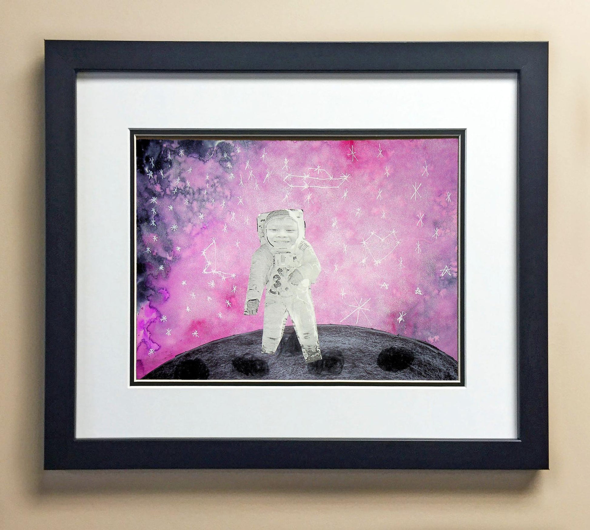 Included with the purchase is the Students Artwork, Frame, double matboard, shatter proof plexiglass, and a ready to hang backerboard with turnbuttons