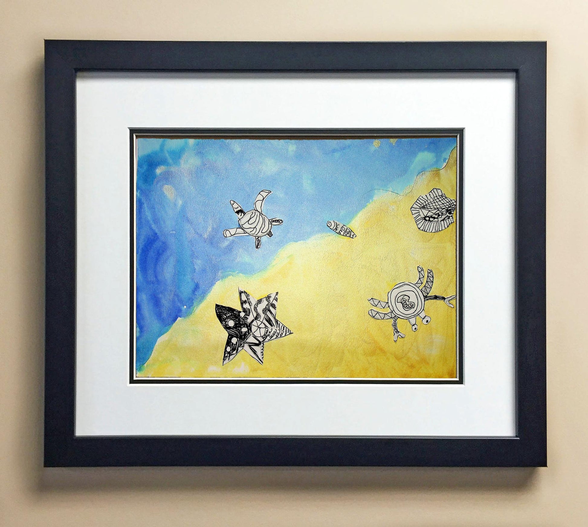 Included with the purchase is the Students Artwork, Frame, double matboard, shatter proof plexiglass, and a ready to hang backerboard with turnbuttons