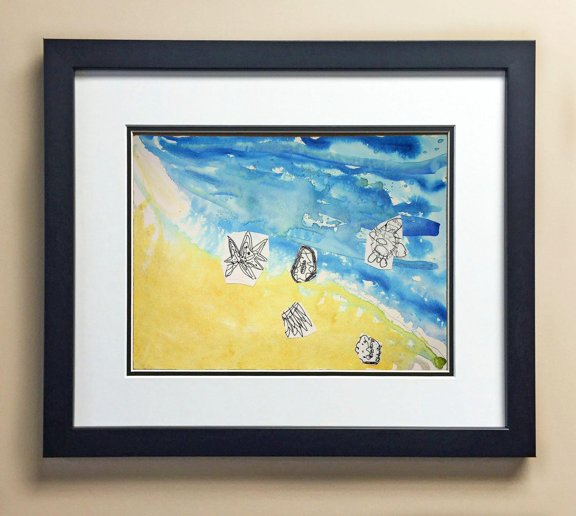 Included with the purchase is the Students Artwork, Frame, double matboard, shatter proof plexiglass, and a ready to hang backerboard with turnbuttons