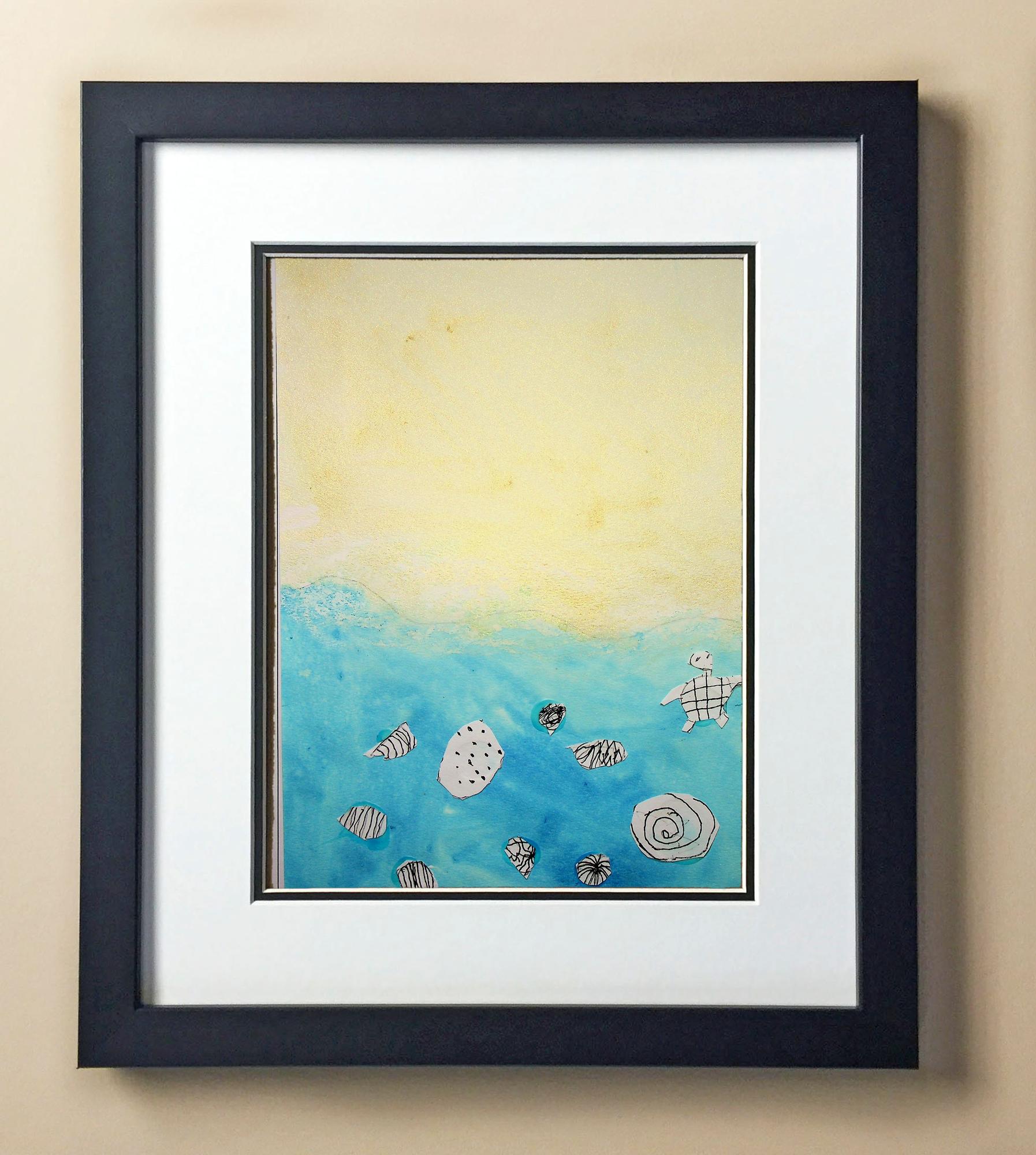 Included with the purchase is the Students Artwork, Frame, double matboard, shatter proof plexiglass, and a ready to hang backerboard with turnbuttons