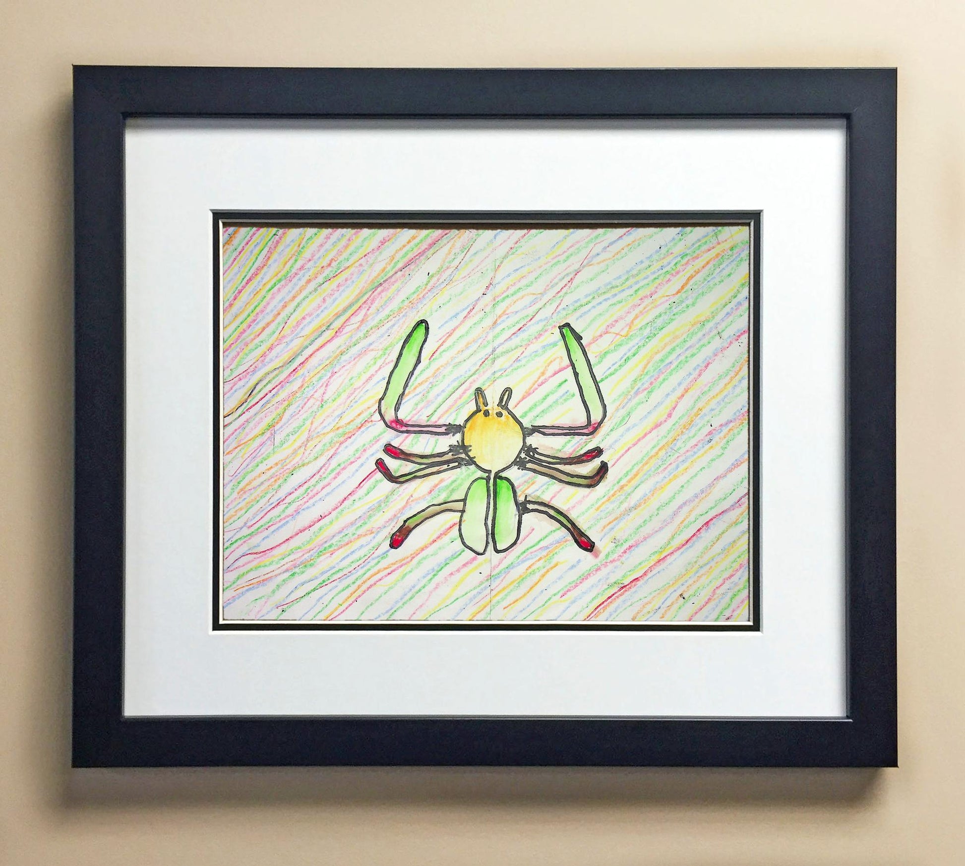 Included with the purchase is the Students Artwork, Frame, double matboard, shatter proof plexiglass, and a ready to hang backerboard with turnbuttons
