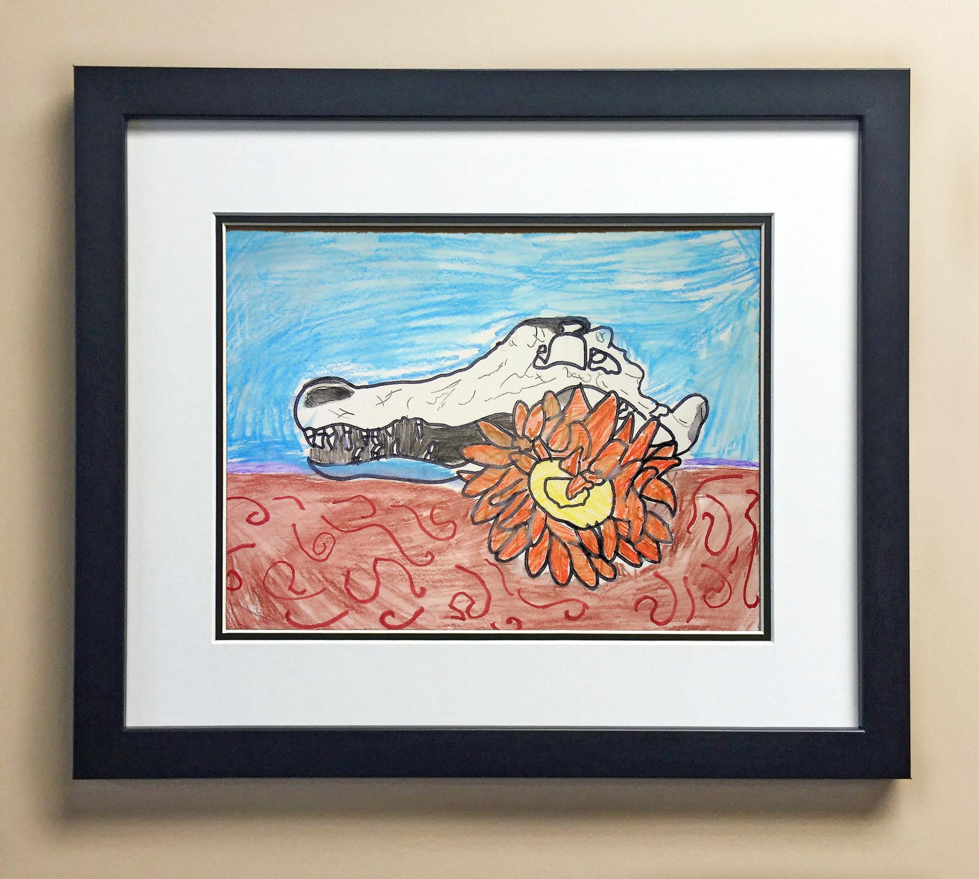 Included with the purchase is the Students Artwork, Frame, double matboard, shatter proof plexiglass, and a ready to hang backerboard with turnbuttons