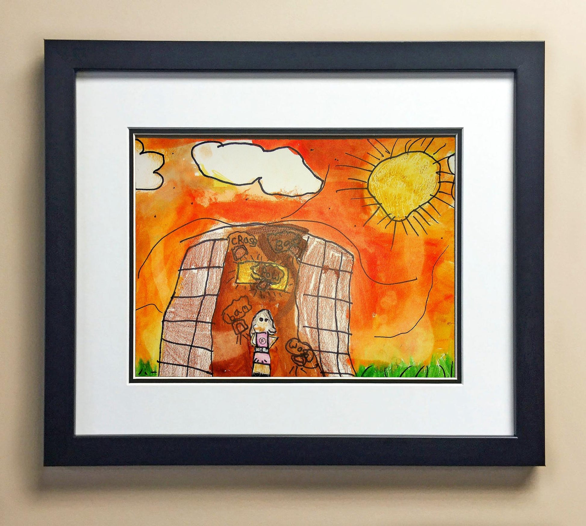 Included with the purchase is the Students Artwork, Frame, double matboard, shatter proof plexiglass, and a ready to hang backerboard with turnbuttons