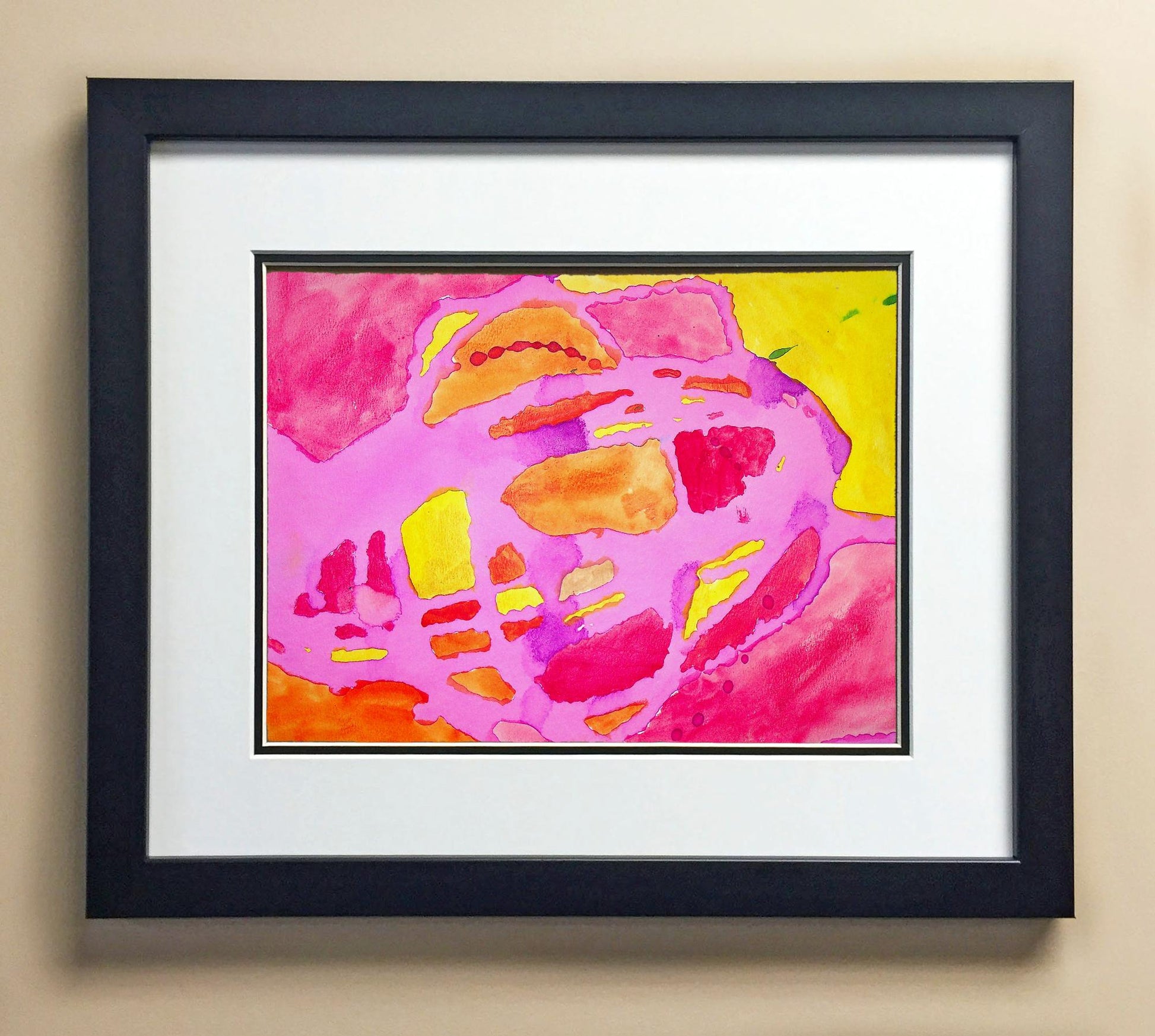 Included with the purchase is the Students Artwork, Frame, double matboard, shatter proof plexiglass, and a ready to hang backerboard with turnbuttons