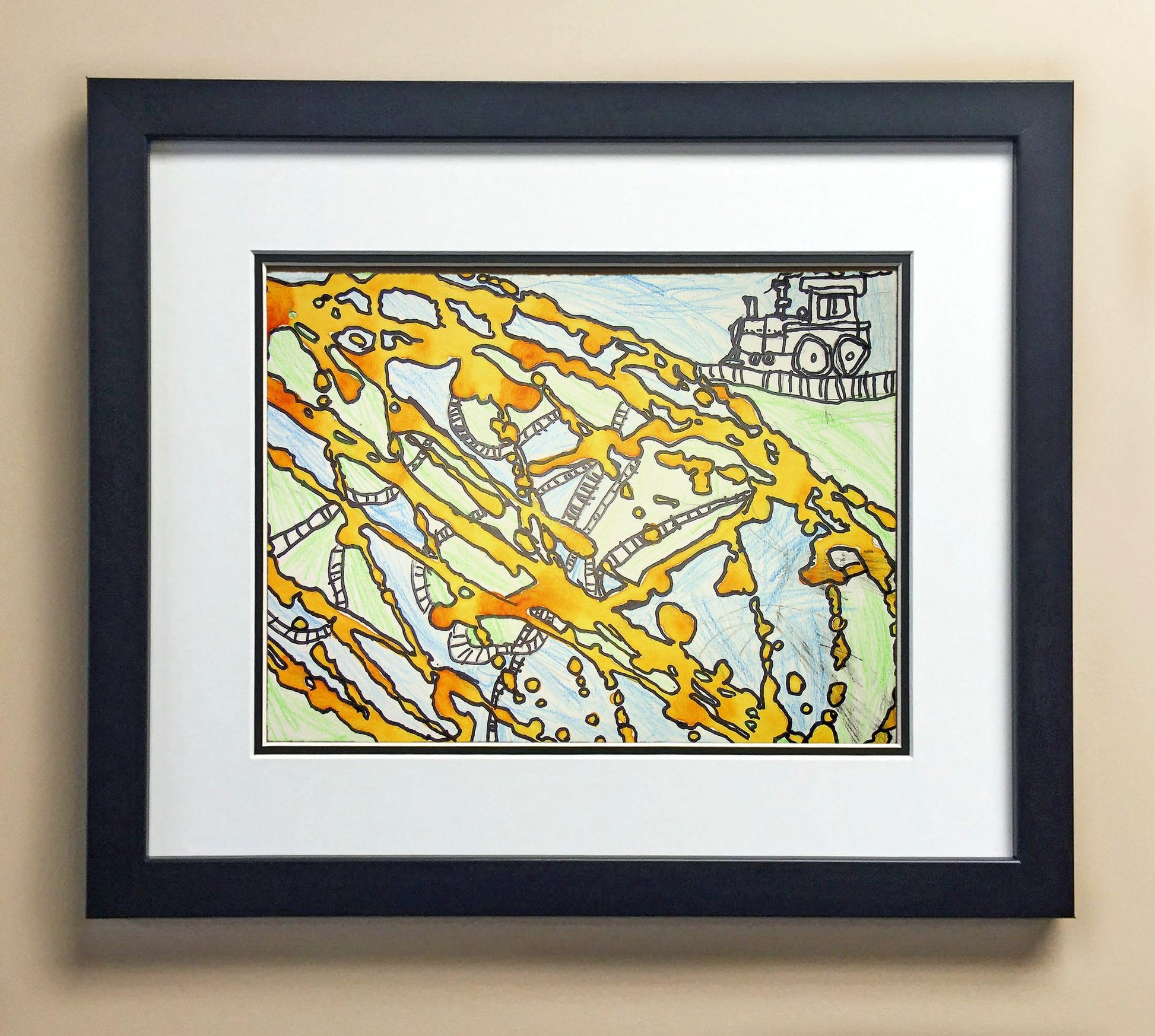 Included with the purchase is the Students Artwork, Frame, double matboard, shatter proof plexiglass, and a ready to hang backerboard with turnbuttons