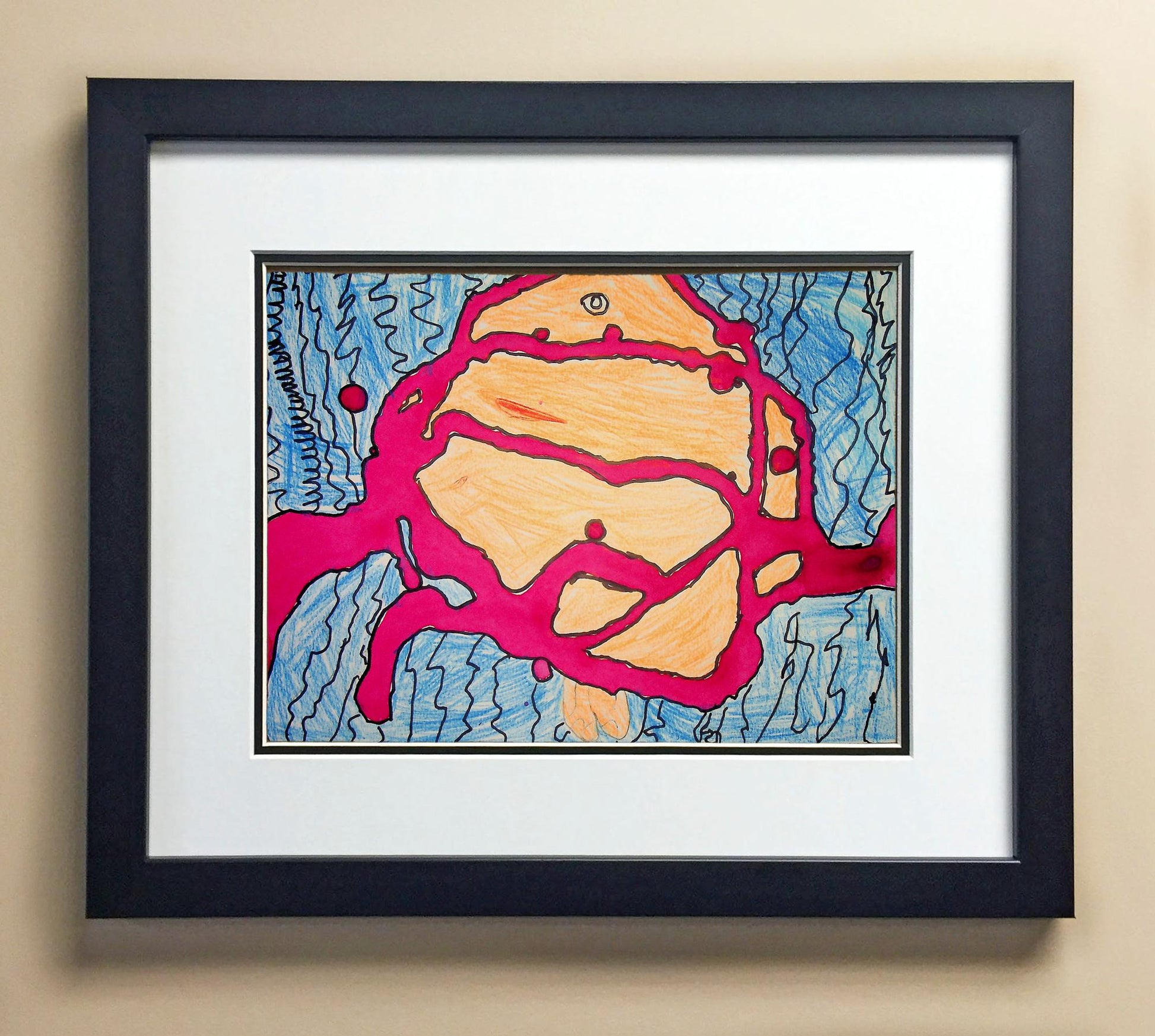 Included with the purchase is the Students Artwork, Frame, double matboard, shatter proof plexiglass, and a ready to hang backerboard with turnbuttons