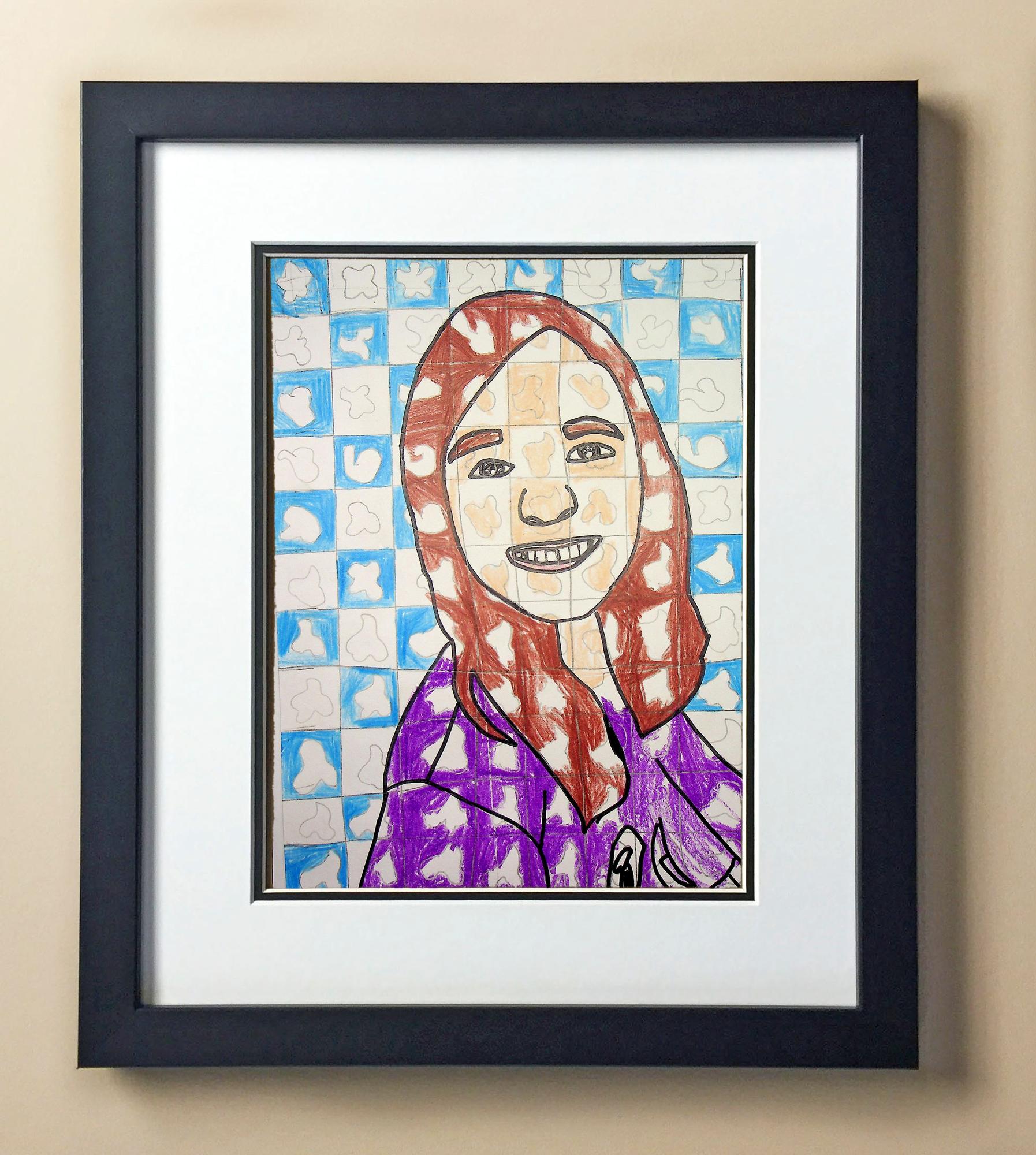 Included with the purchase is the Students Artwork, Frame, double matboard, shatter proof plexiglass, and a ready to hang backerboard with turnbuttons