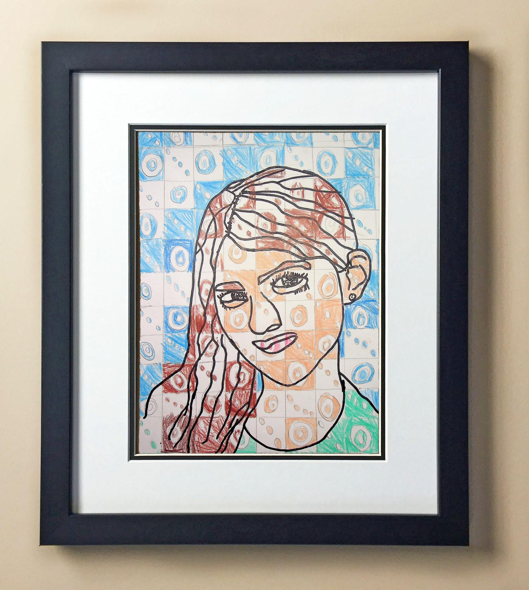 Included with the purchase is the Students Artwork, Frame, double matboard, shatter proof plexiglass, and a ready to hang backerboard with turnbuttons
