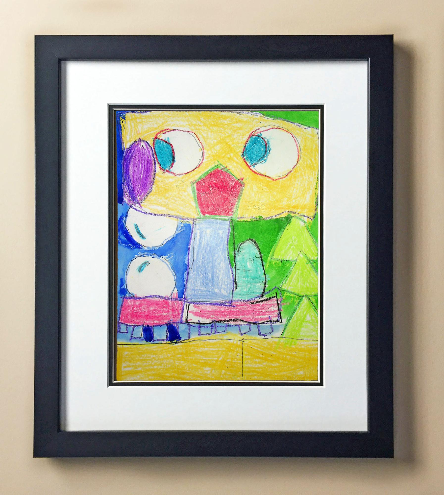 Included with the purchase is the Students Artwork, Frame, double matboard, shatter proof plexiglass, and a ready to hang backerboard with turnbuttons