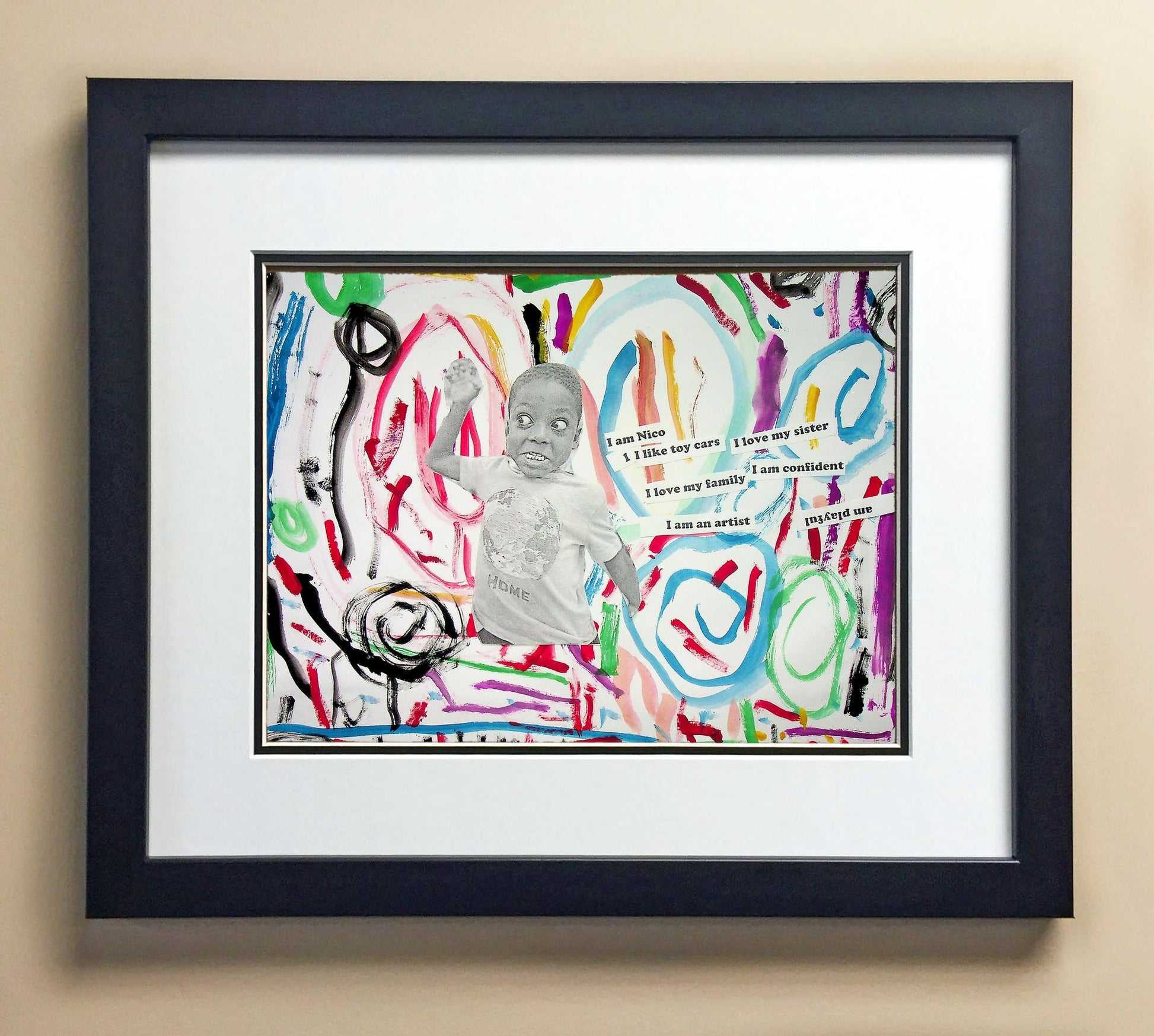 Included with the purchase is the Students Artwork, Frame, double matboard, shatter proof plexiglass, and a ready to hang backerboard with turnbuttons