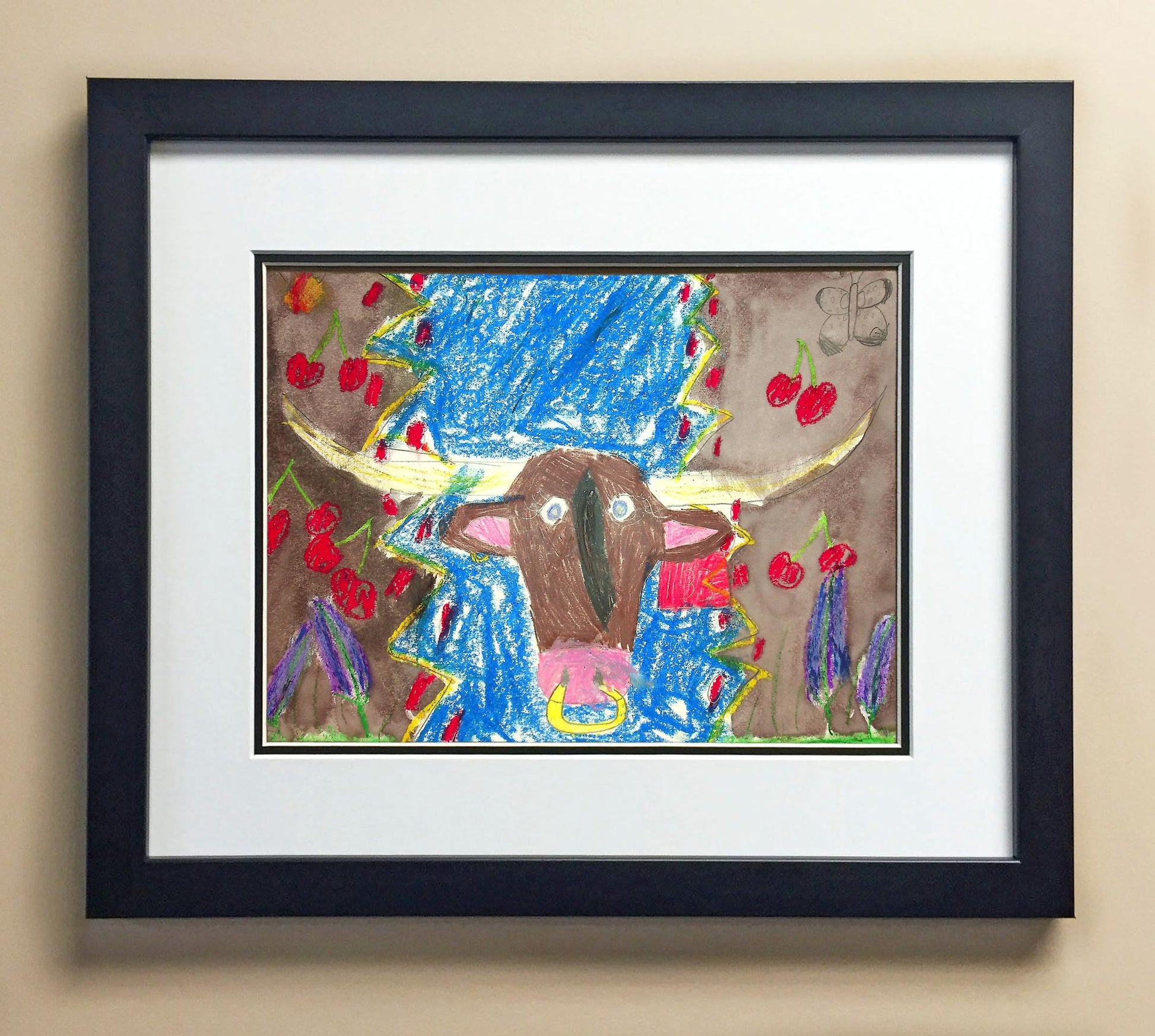 Included with the purchase is the Students Artwork, Frame, double matboard, shatter proof plexiglass, and a ready to hang backerboard with turnbuttons